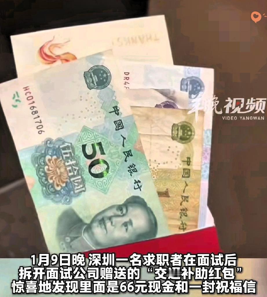 谁能想到,一场普通的面试,竟能收获意想不到的温暖! 深圳这位求职者的经历,狠狠刷新了我们对职场招聘的认知,面试结束后收到的不是冰冷的“等通知”,而是66元红包和一封满是诚意的感谢信,这样的操作,堪称求职圈的一股暖流。 在求职市场里,求职者往往处于被动的位置,很多企业只看重候选人的价值,却忽略了他们奔波面试的辛苦与忐忑。 这家公司的做法,无关金钱多少,而是把“尊重”落到了实处。对每一位面试者都给予认可,这份用心不仅能温暖陌生人的心房,更能彰显企业的格局与温度,这也是吸引人才最核心的竞争力。 真正的优质企业,从来不是靠高薪堆砌,而是靠细节里的善意留住人心。 你在求职过程中遇到过哪些暖心的瞬间?快来评论区分享吧!