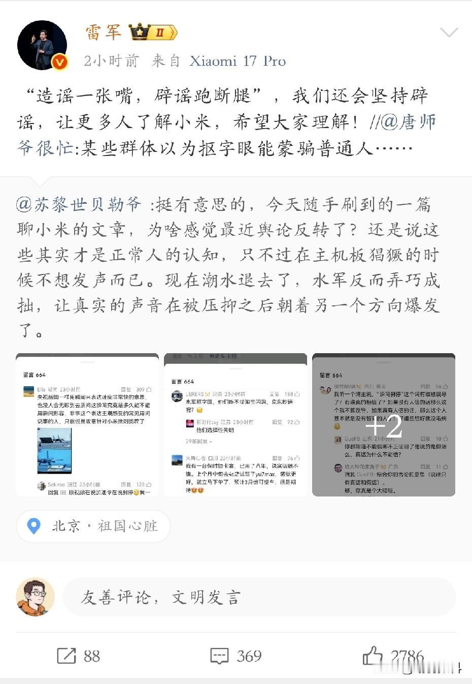 雷军新年直播后 针对网上对小米 及他本人的攻击 后续定会及时回应 不管是造谣 还是刻意制造舆论 小米定会及时引导这些言论 因小米担忧 过多对小米及雷军的争议 很可能影响小米手机和汽车销量 这对小米而言可能是巨大打击 这种情况下 小米必然采取一定措施 所以 无论是网络自媒体 还是网络打手 对国产品牌应有一定容忍度 若确实有做得不到位之处 应及时提出 但不能恶意造谣 损毁国产品牌声誉 雷军