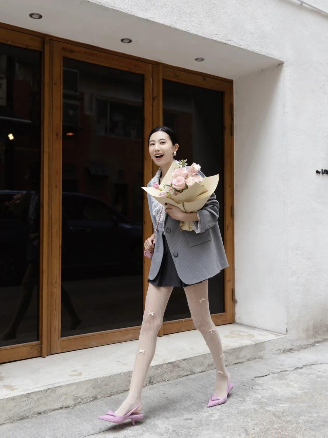 裤袜穿搭🧚🏻♀️冬日叠穿美学|||菱格棉服自带慵懒滤镜 灰色连裤袜和the
