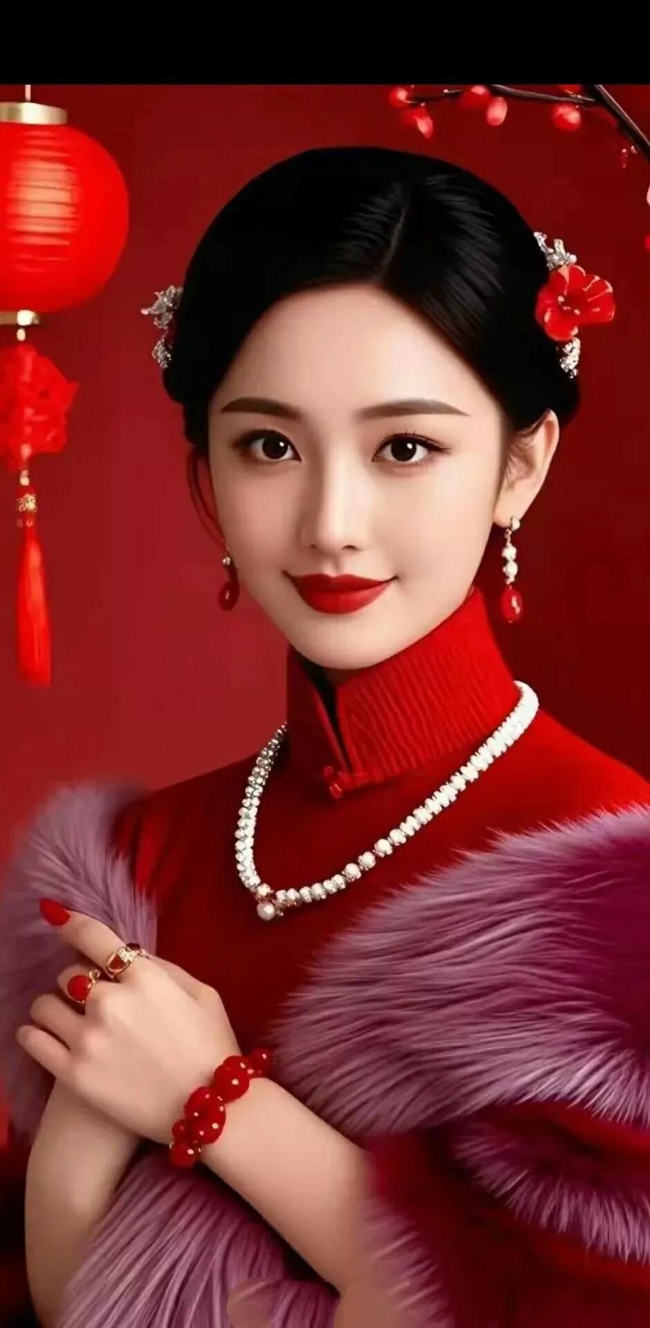 优雅旗袍少女,笑靥如花,粉嫩樱花映衬,尽显东方韵味。