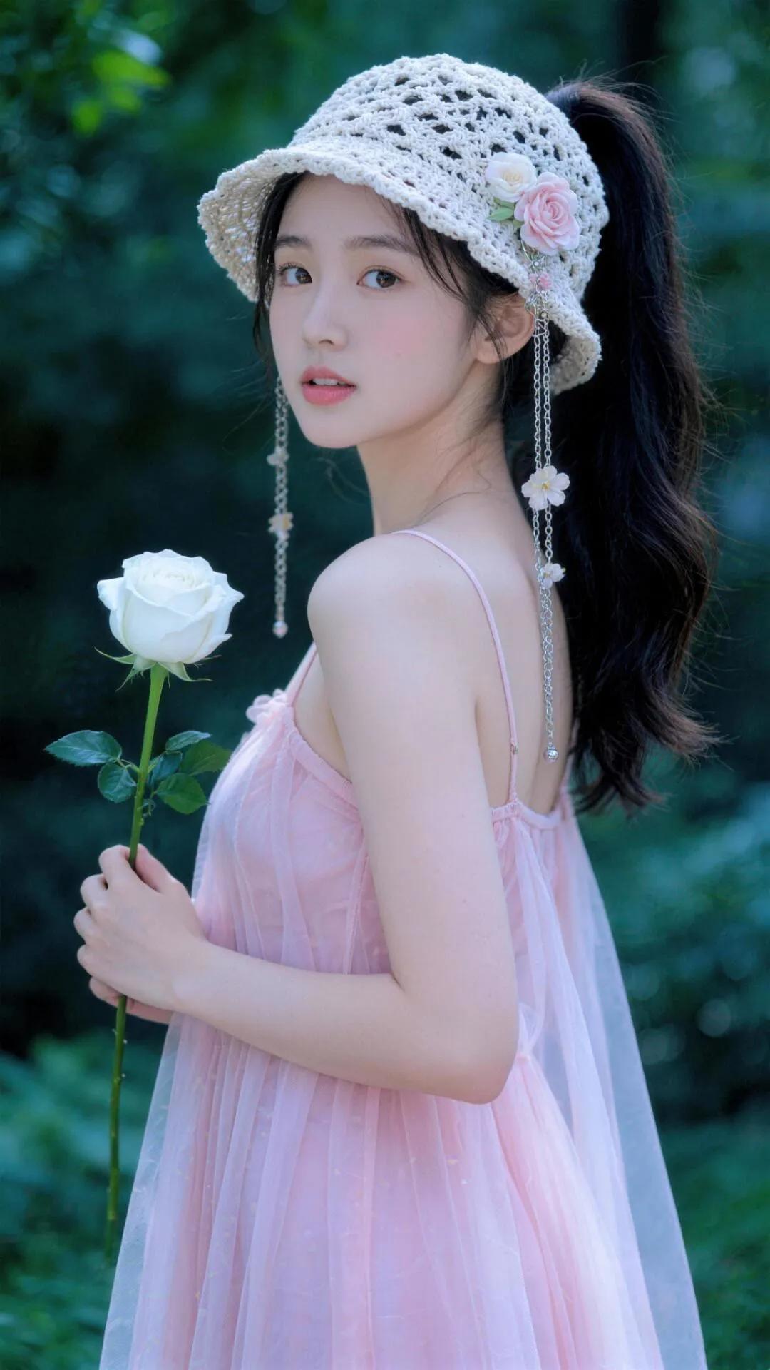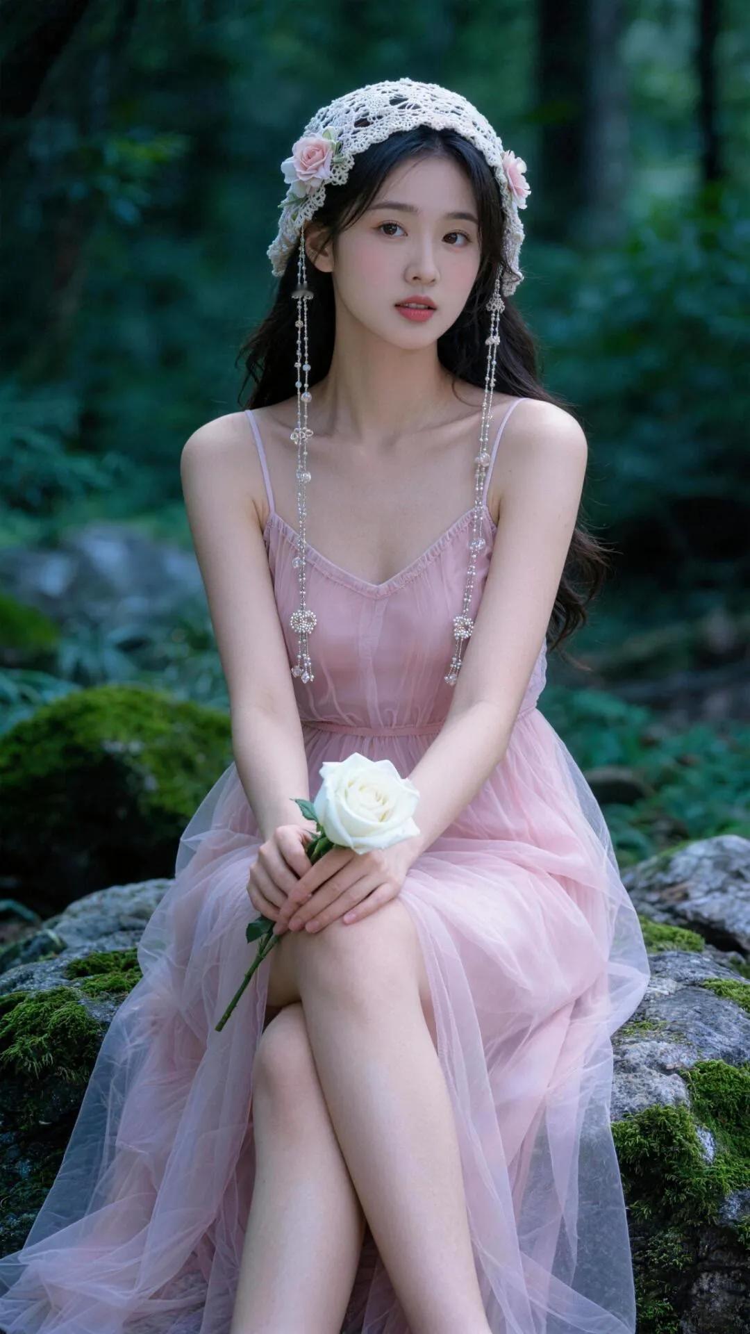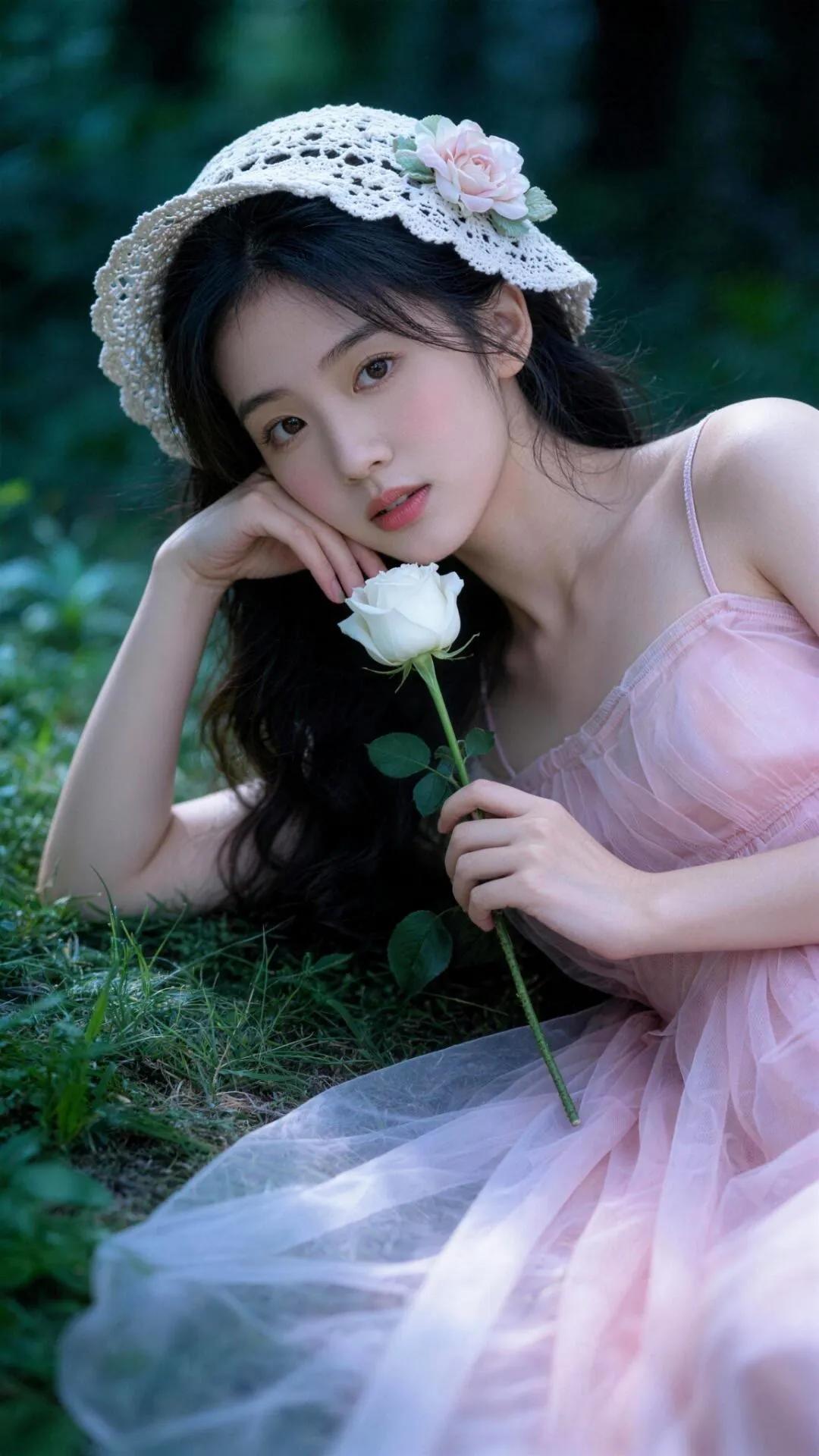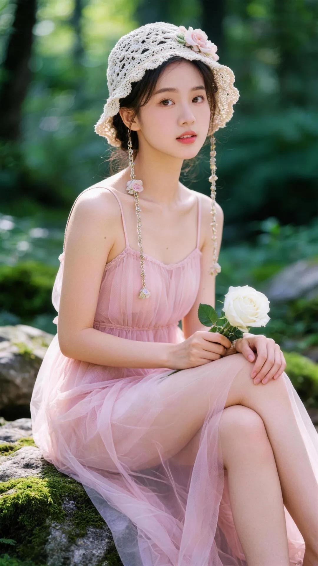 森林中的少女与玫瑰🌹🌿