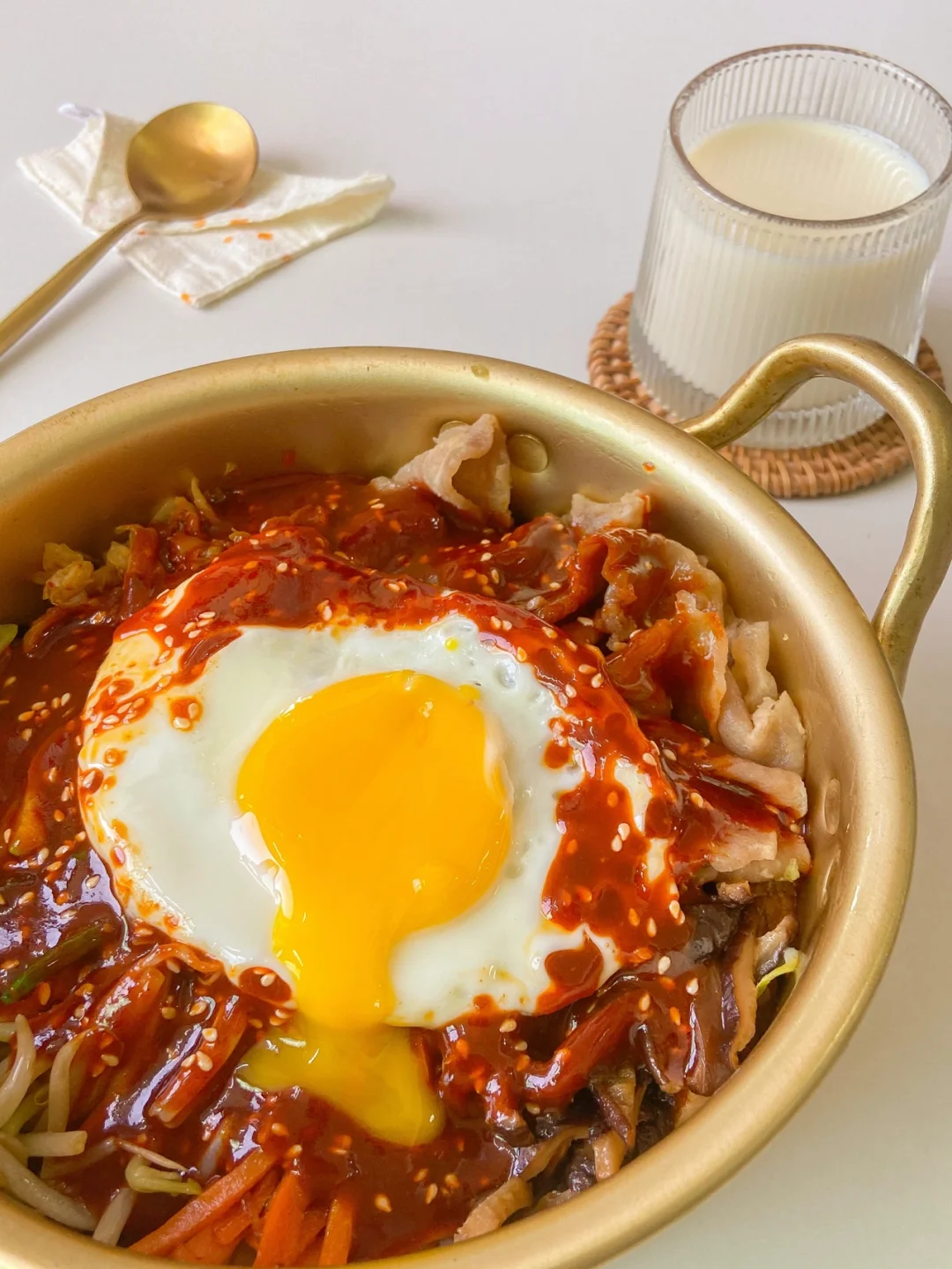 之前发过一次的韩式拌饭 又忍不住再做一次 这次改了点调料 比上次更好吃了😘