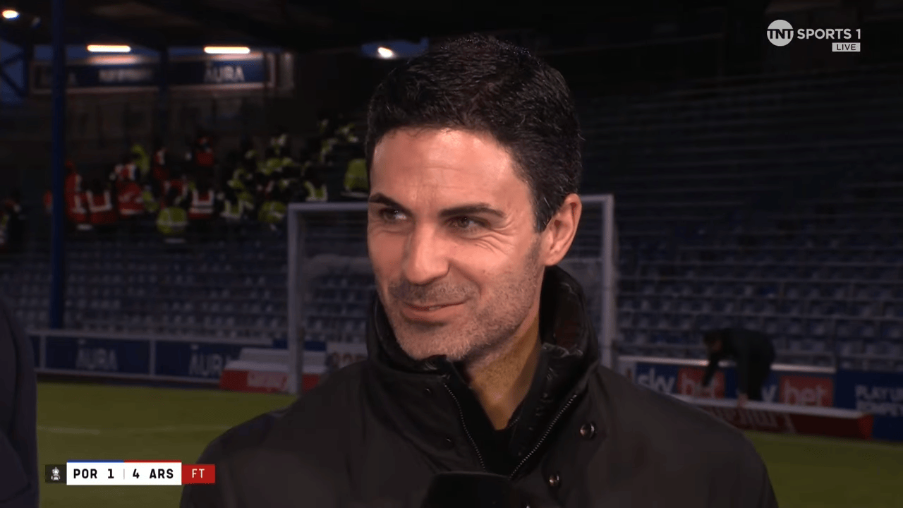 虎扑01月12日讯英格兰足总杯,阿森纳4-1击败朴茨茅斯。赛后,阿森纳主帅阿尔特塔接受TNT体育采访。
