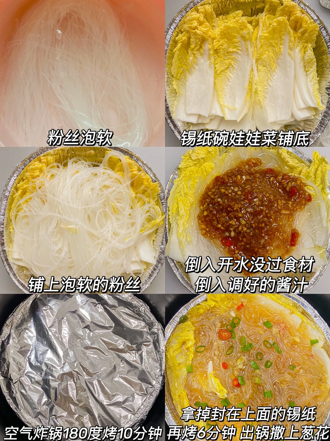 今天在冰箱里找到了娃娃菜刚好还有粉丝就用空气炸锅做了一份 忒下饭了🔥