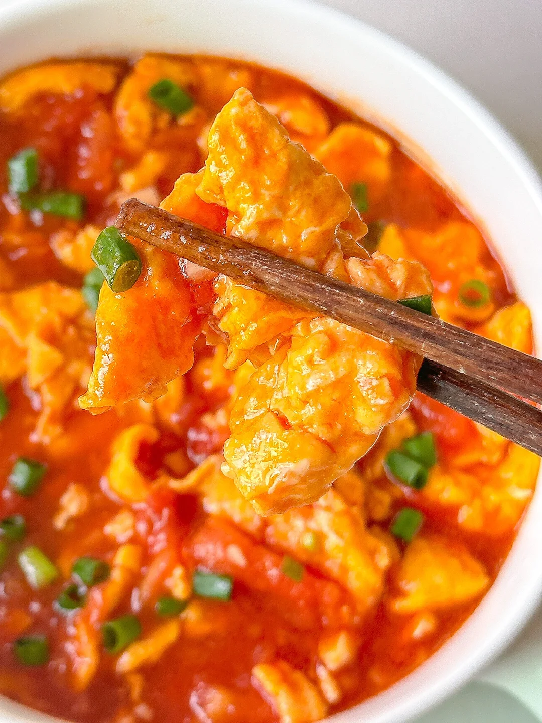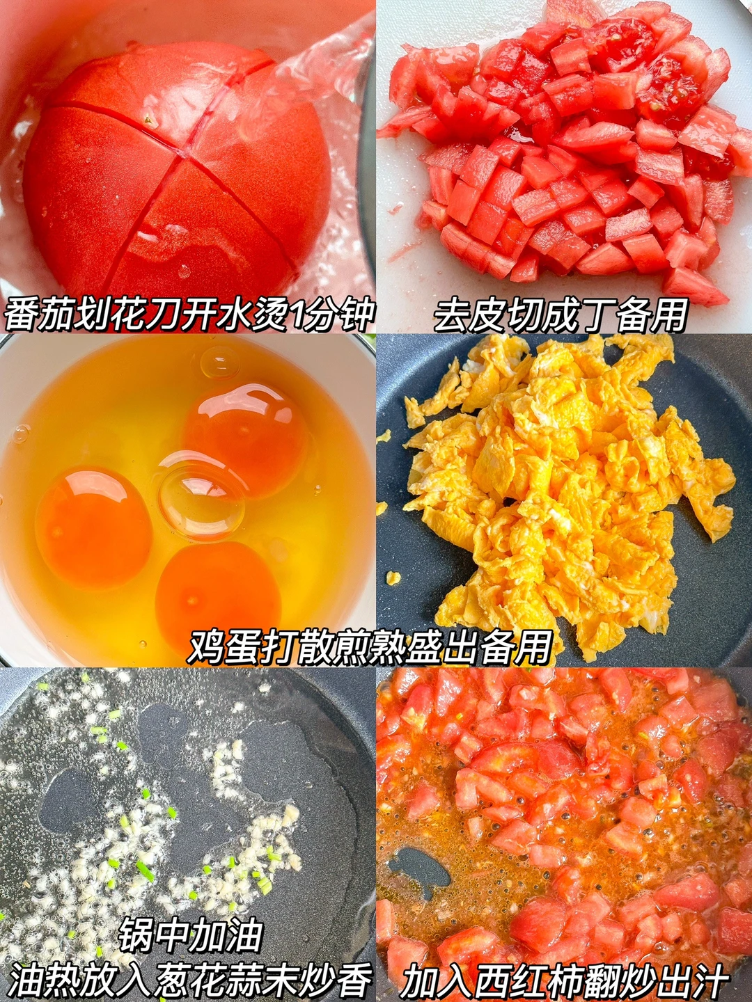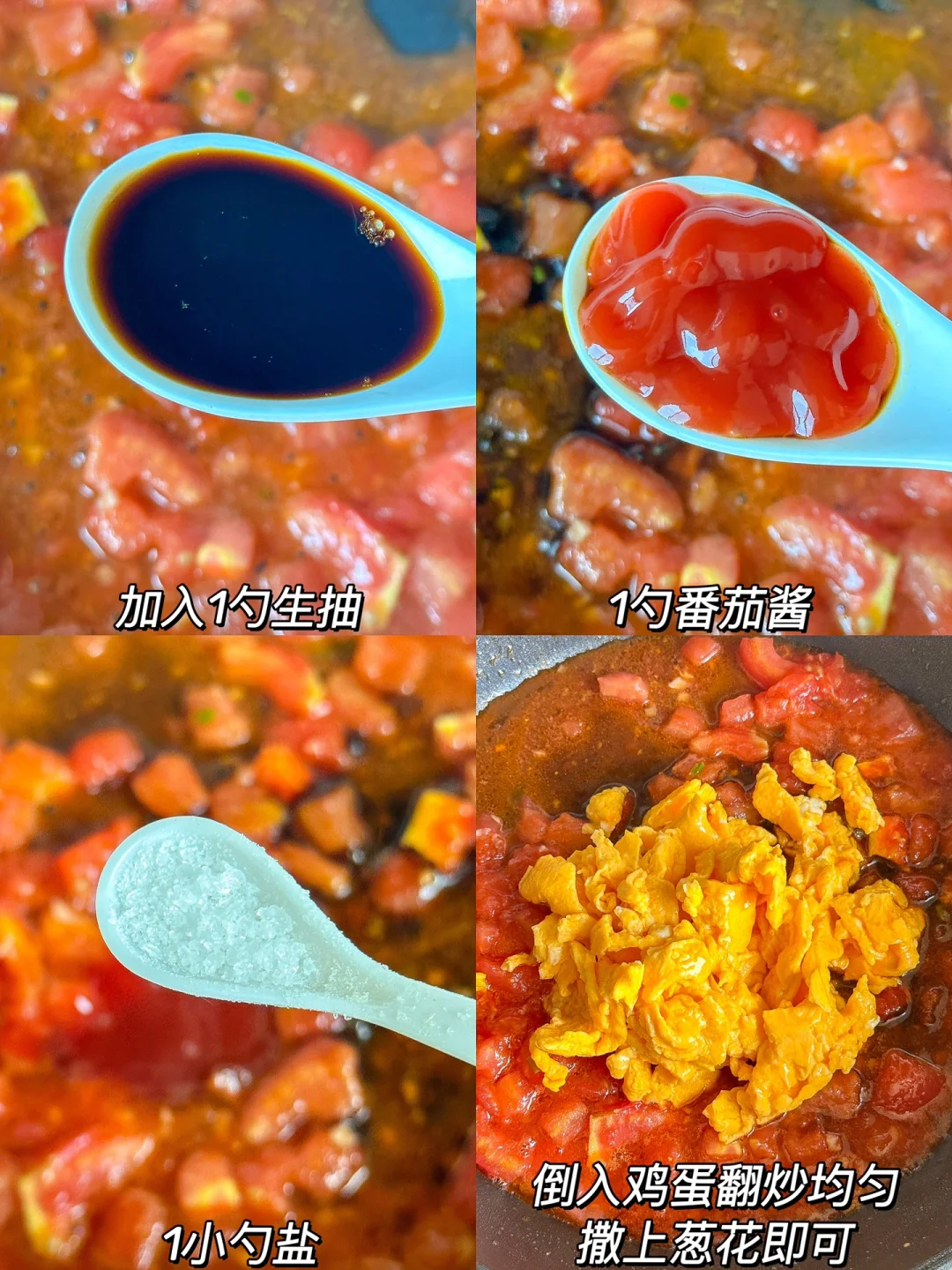 大人小孩都爱吃的西红柿炒鸡蛋!!这个做法真的超下饭的!!酸甜开胃!不管是拌面还是拌饭吃都巨好吃!!做法简单~ ㅤ 🌟准备食材🌟 西红柿一个 鸡蛋3颗 葱 蒜 🌟做法🌟 1️⃣番茄划花刀开水烫1分钟去皮切成丁备用 2️⃣鸡蛋打散煎熟备用 3️⃣锅中加油,油热放入葱花蒜末炒香,加入西红柿翻炒出汁,加入1勺生抽➕1勺番茄酱➕1小勺盐,倒入鸡蛋翻炒均匀撒上葱花即可 ㅤ