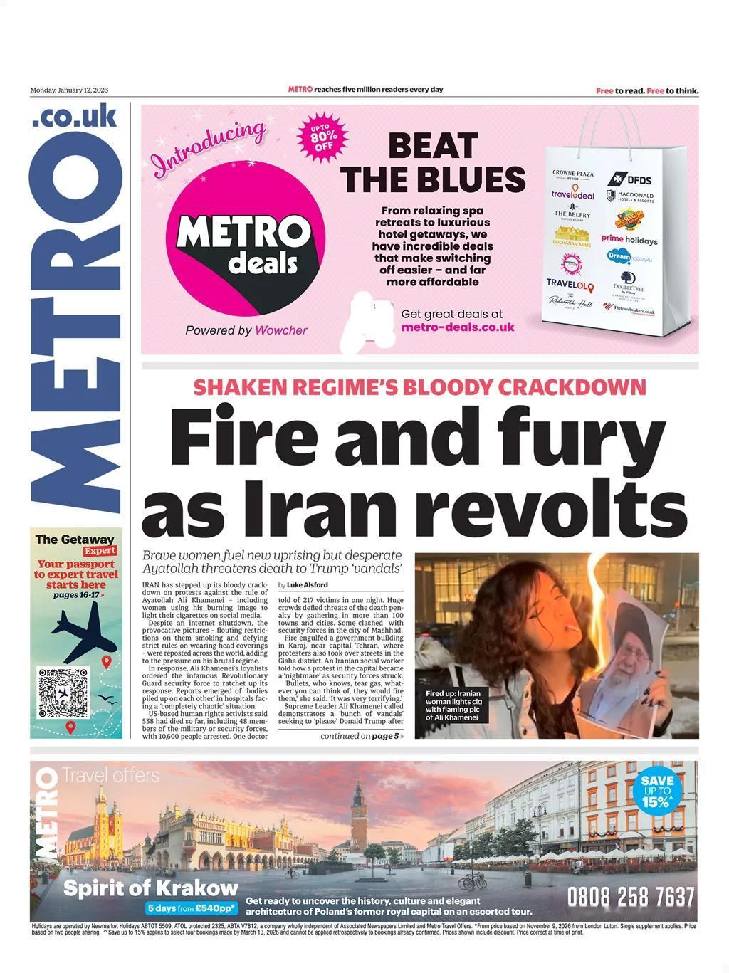 据英国《地铁报》道,伊朗加大了对反政权抗议的“血腥控制”,包括利用哈梅内伊大阿亚图拉燃烧形象在社交媒体上点燃香烟的女性。