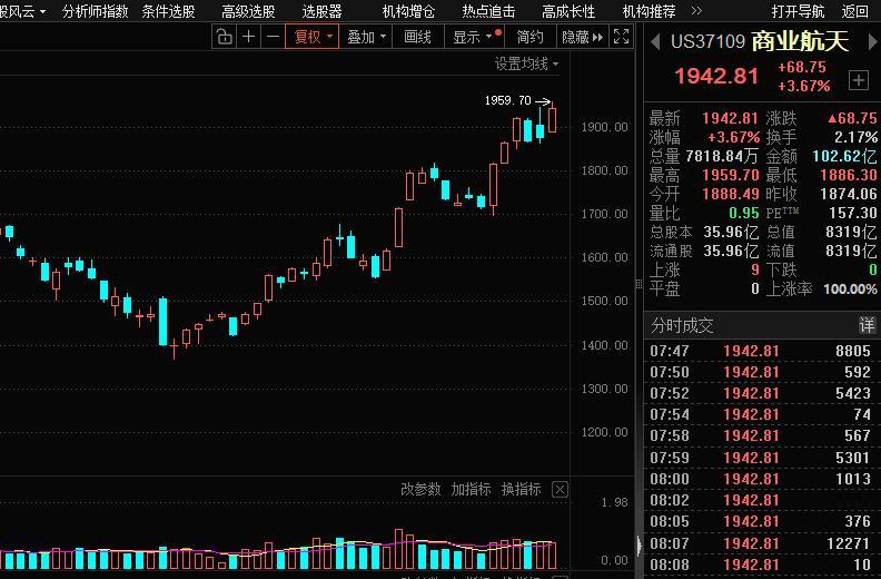 阳阳阳!挑战17阳! 从目前情势看,今天有望继续收阳,挑战17连阳; 为什么这样预判? 因为科技股不熄火,那么全市场会维持量价齐升; 2024年2635点股灾底的时候我说: A股牛市建立在科技成长之上,没有科技股牛市就没有A股牛市, 现在大家应该更理解这句话; 目前商业航天 可控核聚变,AI应用涨势如火如荼; 那么市场就不存在熄火可能; 具体今天,压力位上午看4127点,日线级别站稳这个收盘,那么本周后期就是4172点。 成交量方面,如果科技股再领涨两天,那么周中的时候,极有可能见到4万亿成交。 2026第一周,美股商业航天涨幅是13%,A股商业航天涨幅是11%。 联动非常明显,后面什么时候开始调整,持续盯着美股商航走势。 大家要思考一件事情,为什么中美这波商航都是2025年11月下旬启动?