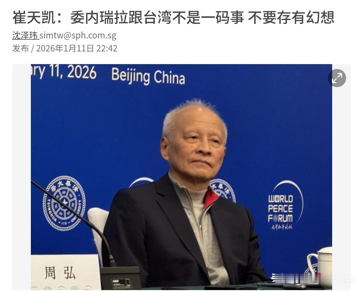 中国原驻美国大使崔天凯把话说的非常的透彻!1月11日,崔天凯表示,委内瑞拉跟台湾