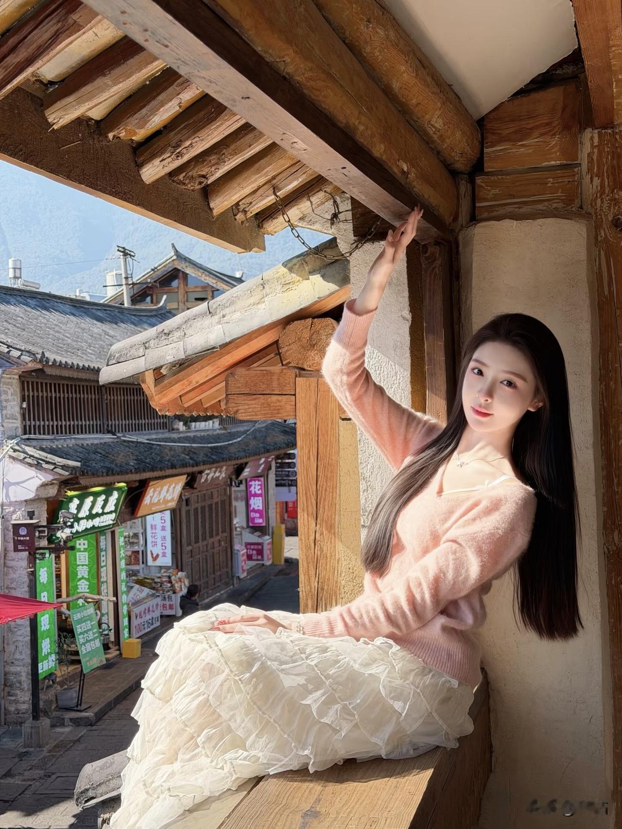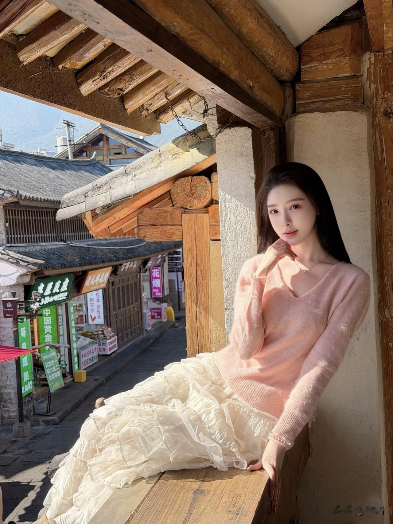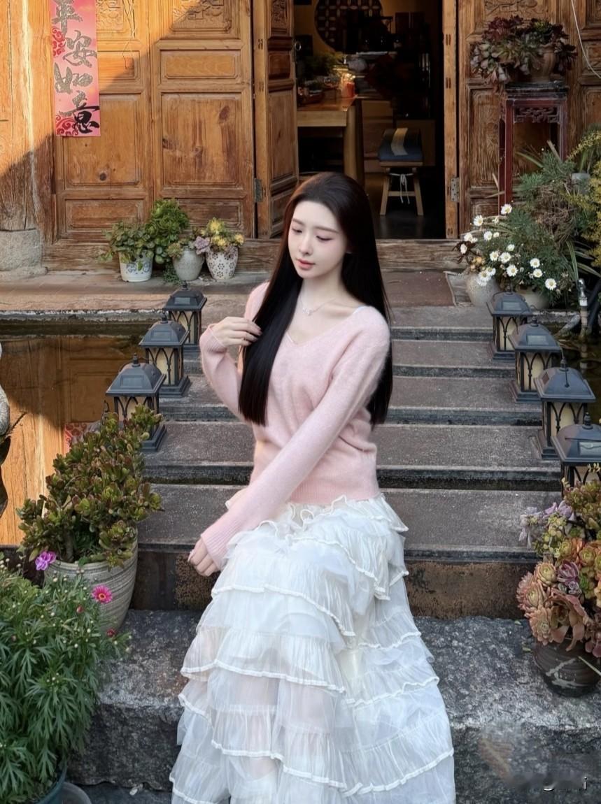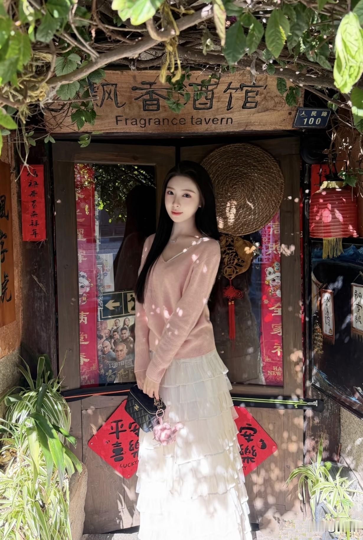 美图欣赏,看图写诗 《巷陌粉花》 七言绝句 古巷晴光覆粉纱, 白裙层叠漾芳华。 繁花映面春风里, 一步温柔入酒家。 现代诗 三角梅把古巷染成玫红, 粉色毛衣增添春日的浓。 白纱裙的褶皱里, 藏着细碎的光。 木门前的石阶, 酒馆的牌匾, 是你的背景。 抬手拂发的瞬间, 阳光穿过枝叶, 在你身上织就温柔的网, 古巷的烟火气, 也因你,多了几分暖意。 图片来源于网络