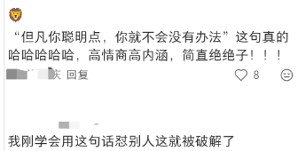 但凡你聪明点,你就不会没有办法"这句真的哈哈哈哈哈,高情商高内涵,简直绝绝子