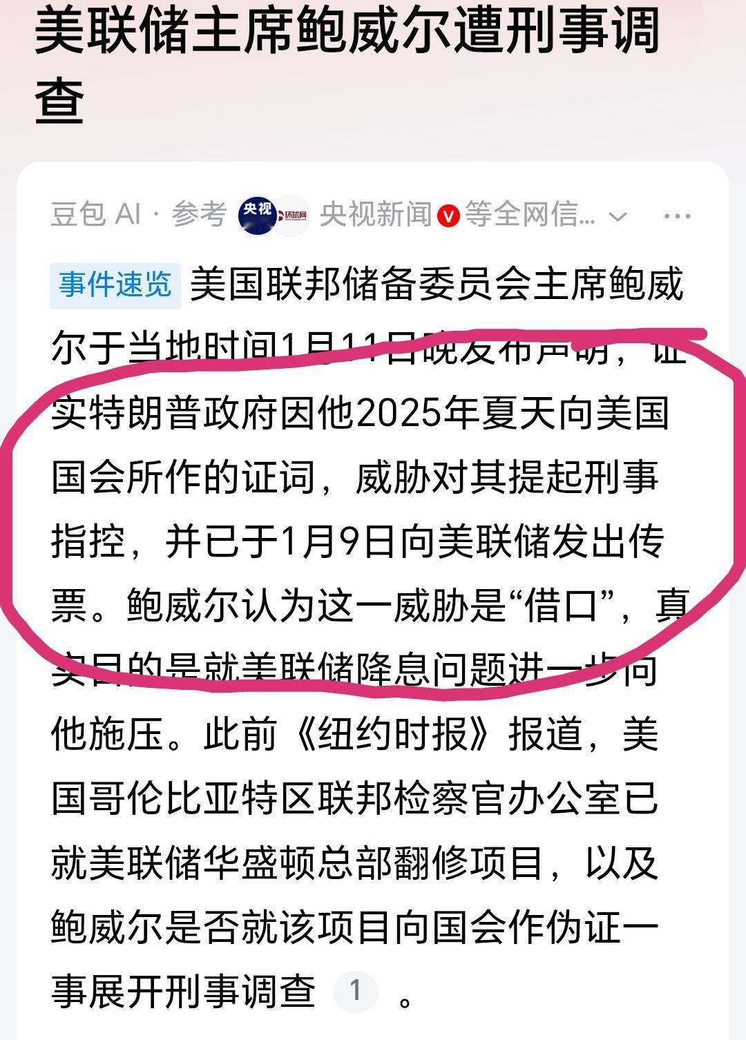 美联储主席被刑事调查。现在知道特朗普是什么样的人了吧? 他真是一个诚实的人。[偷笑] 他说了的事,他真的就会去做,做不做得到是另外一回事,但是他真的会去做。 看看格陵兰岛,看看委内瑞拉,所以不要以为加拿大不可能。 当然,他对台湾没兴趣也是真的。 点右上角关注我,我们一起去看这个魔幻的世界