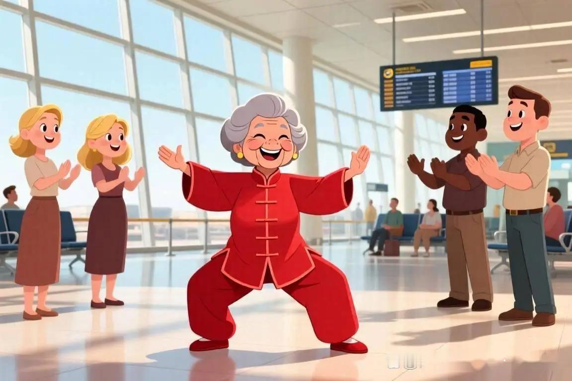 这就是中国文化的魅力!近日埃及开罗机场,因为飞机延误导致数十位乘客被限制机场,就在大家等机无聊时,一位中国大妈在候机室内练起了八段锦,没想到大妈的动作把周围的外国人都看待了,纷纷围上来照着大妈的动作自己原地比划,而大妈则直接现场开班,带着外国友人们一起练。   飞机晚点的烦心事,谁都碰上过,但你见过因为延误,候机大厅变成“健身房”的场面吗?前几天,在埃及的开罗国际机场,一位中国大妈站出来拉筋舒展,没喊口号、也没打招呼,结果把一群外国人也一块儿“带练”了起来。   没音乐、没翻译,动作一招接一招,反而让整个候机区安静下来,变得像一场特别的表演,谁也没想到,一套八段锦,能在异国机场掀起这么大动静。   那天机场延误了好几个小时,乘客们本来都坐得不耐烦,有的抱怨、有的打哈欠,孩子们也吵吵嚷嚷。   就在这乱糟糟的气氛里,一位六十多岁的中国大妈默默站了起来,活动了下脖子,手一抬、脚一摆,八段锦的动作就这么自然地开始了,她没喊口号,也没招呼人围观,就照自己节奏慢慢做。   一开始没人在意,但动作太舒展,节奏太舒服,反倒吸引了旁边几个人,当大妈做完一个动作准备换招时,几个外国旅客也跟着比划了一下。   大妈一看,乐了,也没客气,干脆就一边练一边带着他们做,没几分钟,围上的人越来越多,甚至还有机场员工和空乘人员也加入了。   原本烦躁的候机厅,突然就安静了下来,只剩下整齐的呼气声和缓慢的动作流动。   这场面不是谁安排的,也不是想上热搜才做的,就是一个人出于习惯在锻炼,结果把周围人也带进去了。   没有语言沟通,动作却成了大家共同的“语言”,谁做得标准不重要,谁学得快也不重要,重要的是那一刻,大家都在认真地动起来,心也静了下来。   你说这叫文化输出吗?其实根本没那么复杂,就像你在外地旅行时,看到当地人做什么好玩儿的事,也会忍不住想试试,这次八段锦在机场“出圈”,说到底,是因为它本身就接地气,动作简单、节奏舒服,最适合这种碎片时间放松一下。   说白了,这不是刻意推广,反倒更有味道。比起舞台上穿着表演服的人专门演一套功法,这种生活里的自然流露,更能打动人。   机场里的人来自五湖四海,大多数人可能连“八段锦”三个字都没听过,可这一套动作下来,个个都能感受到身体在舒展,心情在放松。   有人说这是中国传统文化的魅力,其实更准确地说,是一种生活智慧的传递,你不需要懂中文,不需要了解中医理论,只要跟着动一动,就能体会到那种身心放松的感觉,这种体验感,是任何语言都解释不清的。   这事儿火了之后,网上也炸了锅。有人感叹“大妈简直是民间外交家”,也有人调侃“八段锦成了国际通用动作”,其实大家都看明白了,这不是靠谁组织、谁推广的,而是靠动作本身的吸引力。   说到底,人和人之间的交流,最直接的还是身体语言,你看着对方做得舒服,自己也想试试,比起坐着等飞机生闷气,不如站起来伸伸胳膊、动动腿,这种共识,不分国界。   而且别看八段锦动作慢、节奏稳,练过的人都知道,它对颈椎、腰背的放松效果是实打实的,尤其是长时间坐着不动的时候,练一套下来,浑身都通透了不少。   这次机场的空姐都问大妈,“这个动作是不是对肩颈疼特别管用?”大妈也没多说,继续演示,大家就跟着学,现场气氛比瑜伽课还热闹。   你要说这是不是“文化传播”?当然是,但它不是那种端着架子的“输出”,而是一种“被看见”的生活方式,你不需要推广,它就能自然地走出去,因为这不是某种理论,也不是专属谁的技艺,而是人人都能接触、人人都能尝试的东西。   过去我们总觉得传统文化是老年人的专属,年轻人不感兴趣,但这几年你看网络上,八段锦、太极拳这些慢动作的视频播放量越来越高,尤其在年轻人中间,不少人拿它当减压方式。   这说明什么?说明这种“慢文化”,恰好弥补了现代生活的节奏焦虑,你习惯了高强度的快节奏之后,反而更容易被这种沉稳的节奏吸引。   这次机场的事,说穿了,只是给了大家一个停下来的机会,在等飞机的空档,人们无意中接触到了一种不同的生活节奏,结果发现:原来慢下来,也可以挺舒服。   而这种“舒服”,其实就是文化最真实的样子,它不需要你理解全部背景,也不需要你知道历史渊源,只要你愿意尝试,它就能让你感受到好处,这样的文化,才是真正能走出去、留得下的。   这件事之后,也有媒体评论说,这是一次“无声的跨文化沟通”,我觉得这话说得挺贴切,没有翻译、没有字幕,只有一个动作接着一个动作,却比任何语言交流都更直接,因为身体的感受是共通的,舒服就是舒服,不分国籍。   更妙的是,这种文化交流是双向的,不是我们教别人怎么做,而是大家一起做,互相观察、互相模仿,没有谁是老师,谁是学生,大家都在练,练着练着,就练出了理解和尊重。
