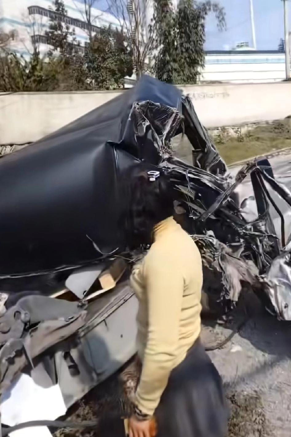 大姐那若无其事的表情,就是头发有点乱,估计已经脑震荡了,整个人懵了不知道发生什么事 当时看起来太感动了太惊讶了。居然这个美女是完好无损,就是头上受了一点轻微的碰撞。搞成这样子人没事真是奇迹了,上辈子好事没少做。看这车,知道为什么老司机喜欢油车了,如果是电车会怎么样,电车就剩架子了。估计出事那一瞬间,祖上在下面动用了所有关系