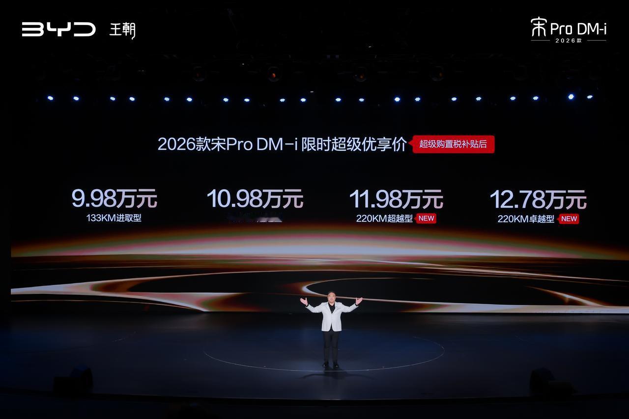 这两天看了下 2026 款宋Pro DM-i 220km 长续航版 的信息,说一句实在的:这次升级的核心很清晰,就是把插混真正往“纯电日常”再推了一大步。 220km 的 CLTC 纯电续航,已经不是“应急用电”,而是覆盖绝大多数城市通勤场景。按每天 20–30km 来算,一周甚至两周不碰油都很正常,插混终于不用再纠结“到底算不算电车”。 更关键的是,它并没有牺牲插混该有的底盘逻辑和长途能力。满油满电 1600km 综合续航、亏电油耗 3.2L,长途出行依然稳得住;城市用电、远途用油,这套逻辑已经非常成熟了。 再看配置思路,也明显是冲着家庭用户去的:冰箱、座椅通风加热、全景天窗、儿童座椅联动、再加上“天神之眼 C”覆盖高速与泊车,都是高频、实用取向,而不是参数炫技。 限时 11.98 万起的价格,说白了,就是用一个 A 级 SUV 的预算,给到接近“中杯变超大杯”的体验。