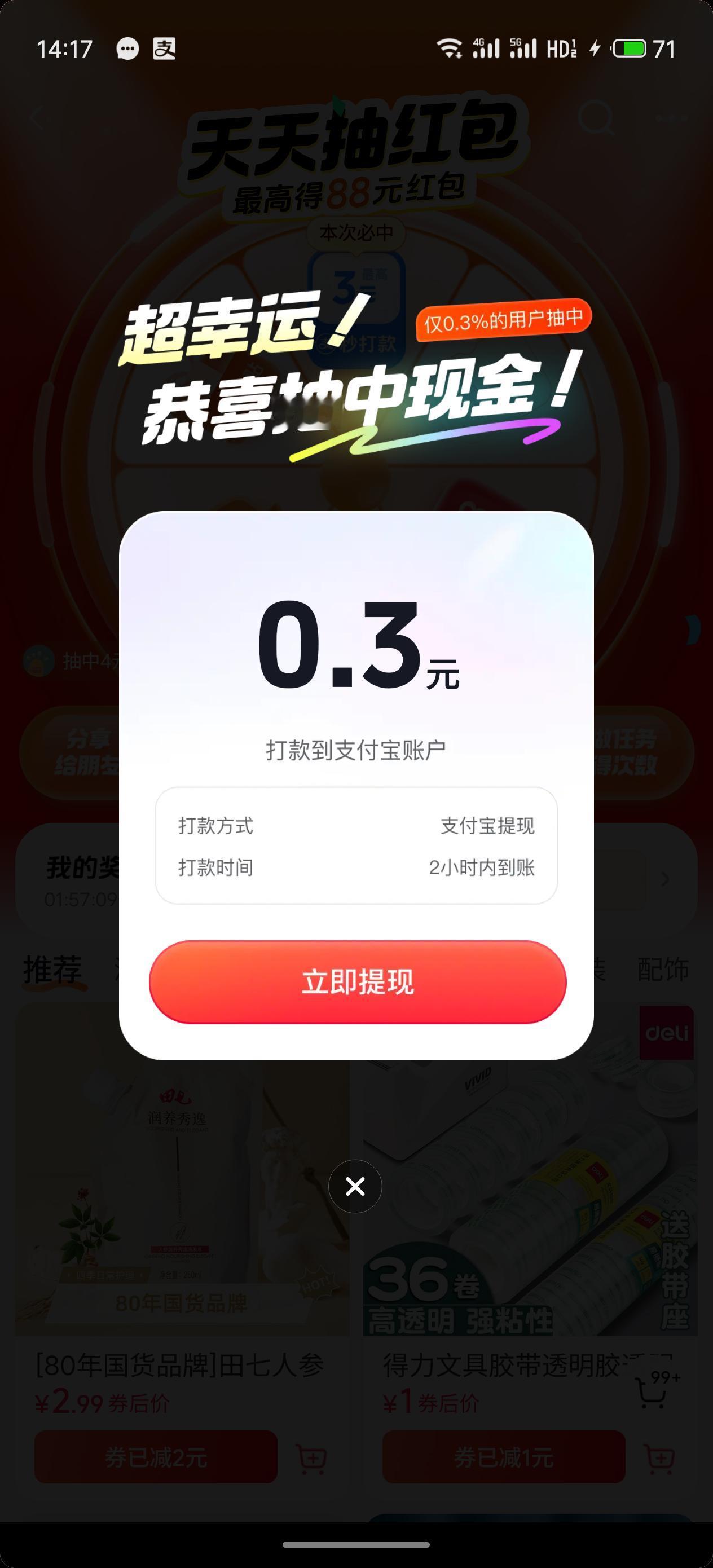🈵5元可以提现啦 5.71的红包🧧到手! 免费薅羊毛