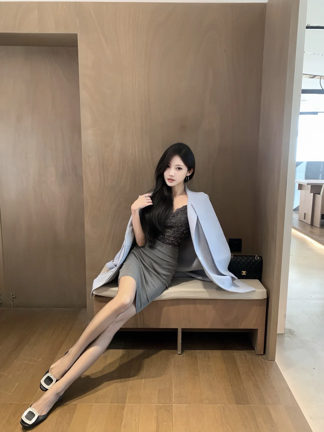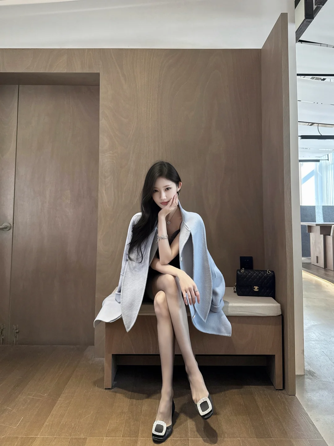 蓝色V领连衣裙简直是高端女神范儿的标配,商务场合穿它气场直接拉满!束腰让身材