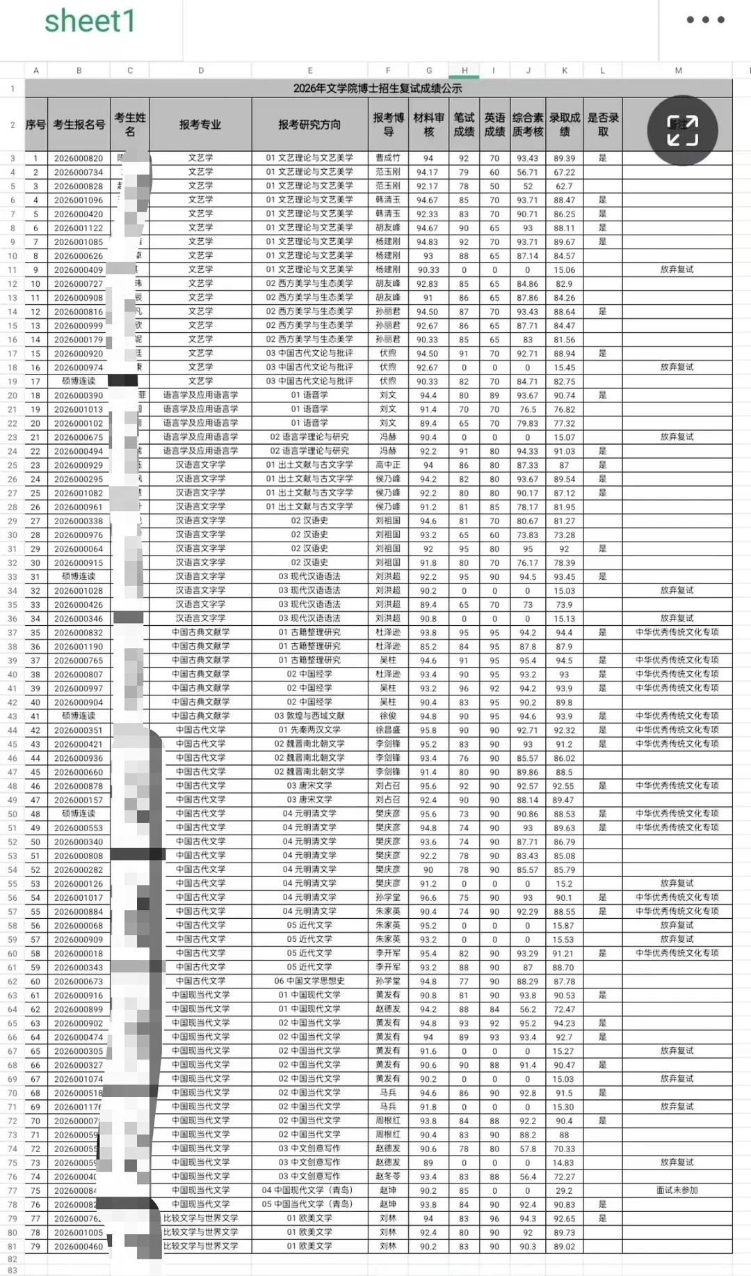 山东大学文学院2026博士复试成绩公示