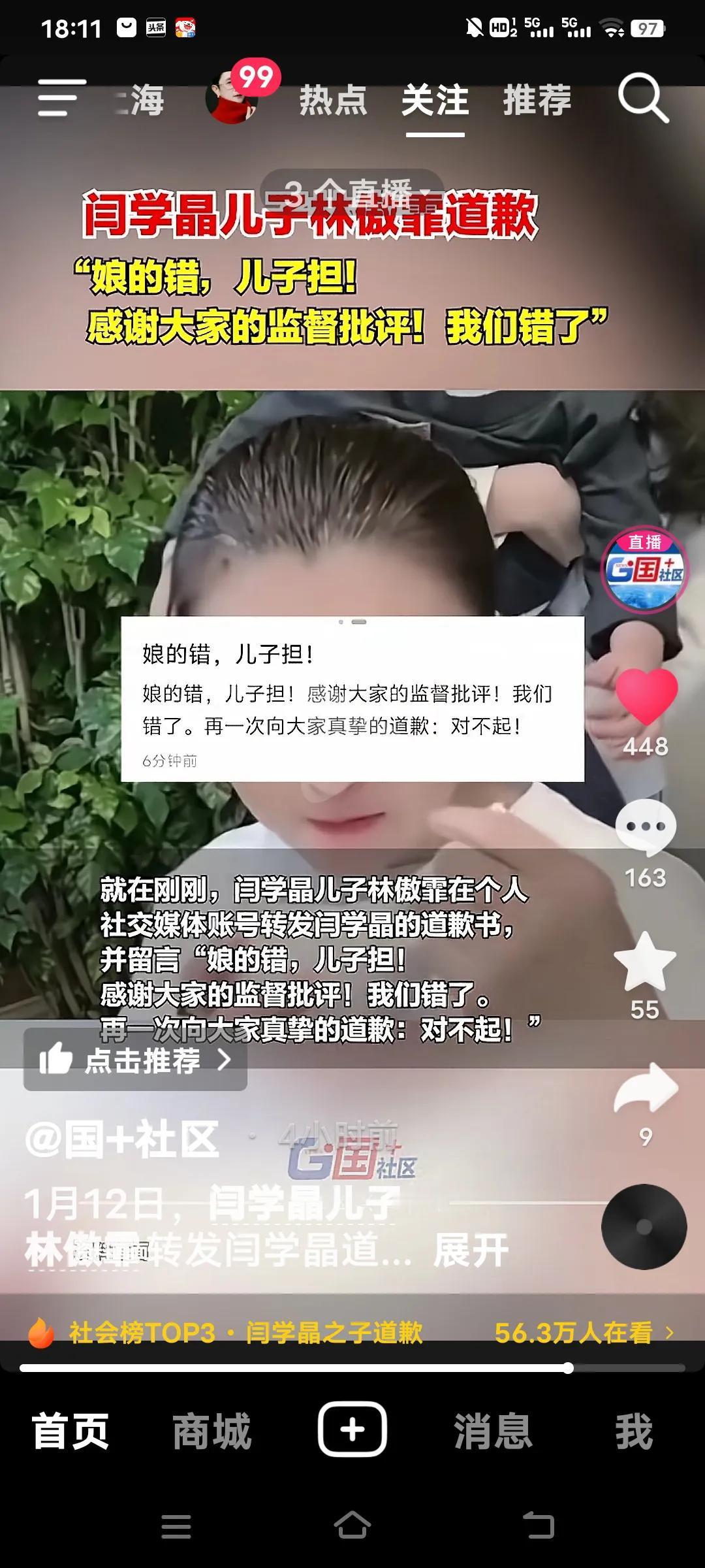 闫学晶这次直播“哭穷”言论可闹大了!她说儿子挣几十万无法维持家庭运转,网友纷纷质疑这是脱离大众的“哭穷”。 11 日晚闫学晶就在朋友圈致歉,认识到是思想出了偏差,还说像给灵魂动了手术。12 日儿子林傲霏也发文“娘的错,儿子担”,再次诚恳道歉。 因为这事,闫学晶账号被禁关注,代言合作也终止。闫学晶是靠《刘老根》被熟知的老演员,儿子林傲霏也毕业于中戏,出演过不少作品。希望他们能真的吸取教训,树立正确价值观。 说到底还是她儿子比较聪明,不然封杀了,真是穷路一条了。评论区有网友说,不是知道错了,是怕了。不管怎么样能认识到问题的严重性就可以了,能饶人处且饶人。个人观点,不喜勿喷!