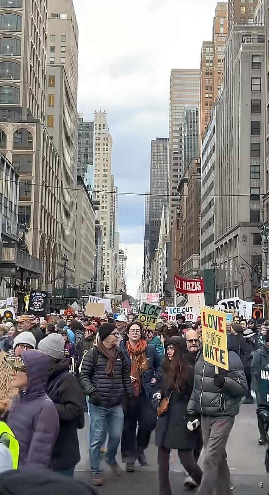 美国的街头也很热闹,人们纷纷涌上街头,举着旗子,打着标语,形成了一道道亮丽的风景线。通过画面看这些美国的街道,感觉也是非常狭窄的,看着没有我们这里的街道宽敞,从这方面也能够看出来,美国城市基础设施建设也是很一般的,可不像传说的那样!