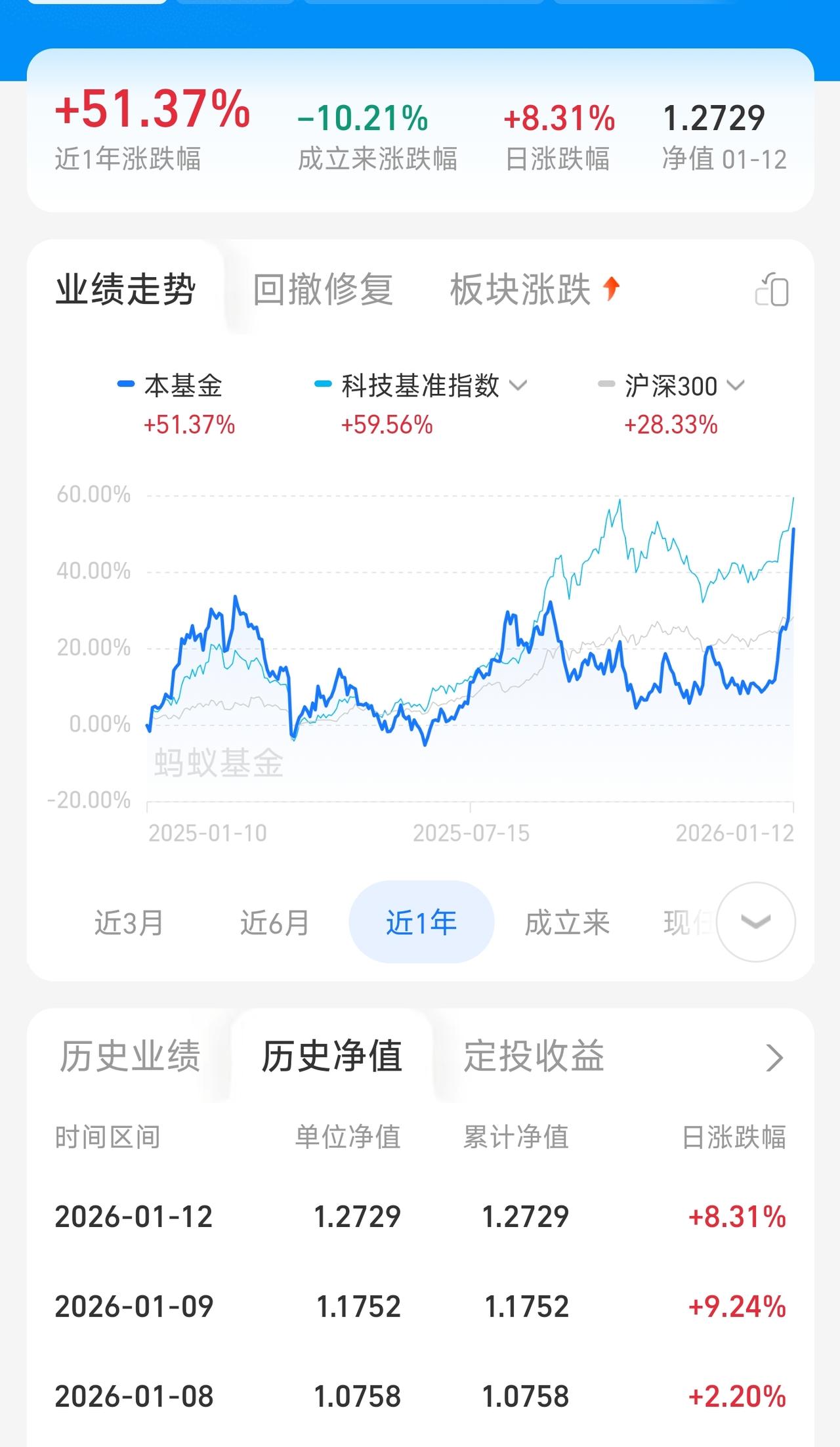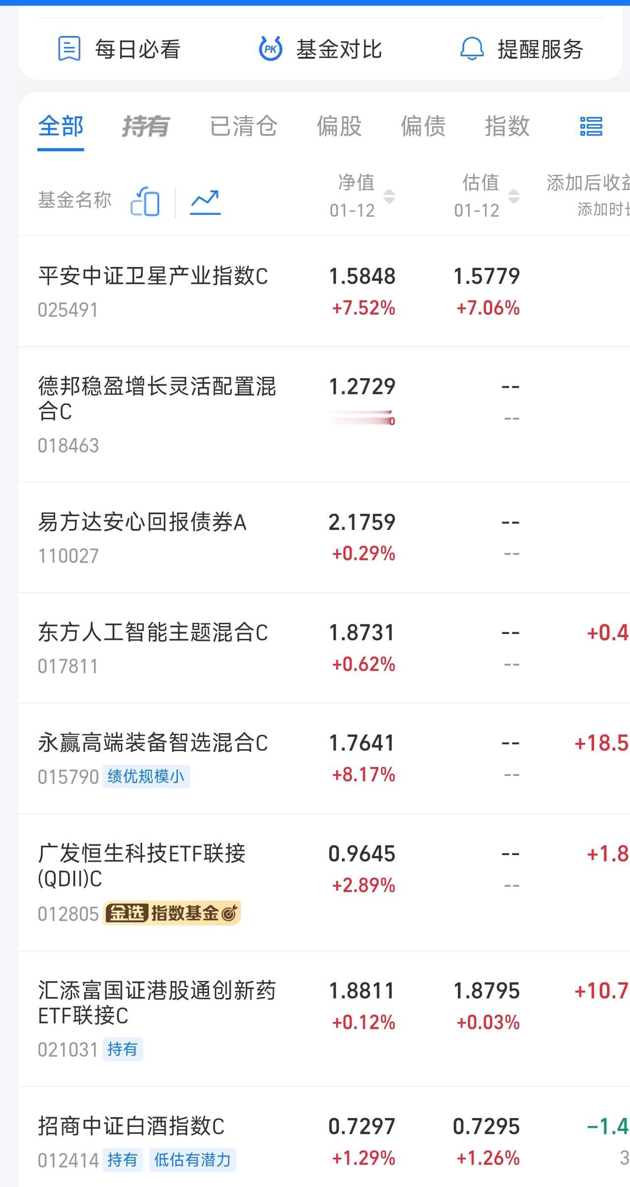 这个基金火成是这个样子,真让人眼红。 你们看它上涨那条线,直直的就上去了。像不像一根天线,是要上天的节奏呀。 这个基金的名字叫德邦稳盈配置混合c。我是在理财圈里面看到有位大佬今天加仓了100万这个基金,所以我也跟了一千。 但是这个基金有个毛病,就是看不到他的估值。这就不好操作了吧,当天是涨是跌都看不到。 到了今天晚上9点我一看,好嘛,又涨了这么多,那我今天买进去的,是不是要在高位接盘了?