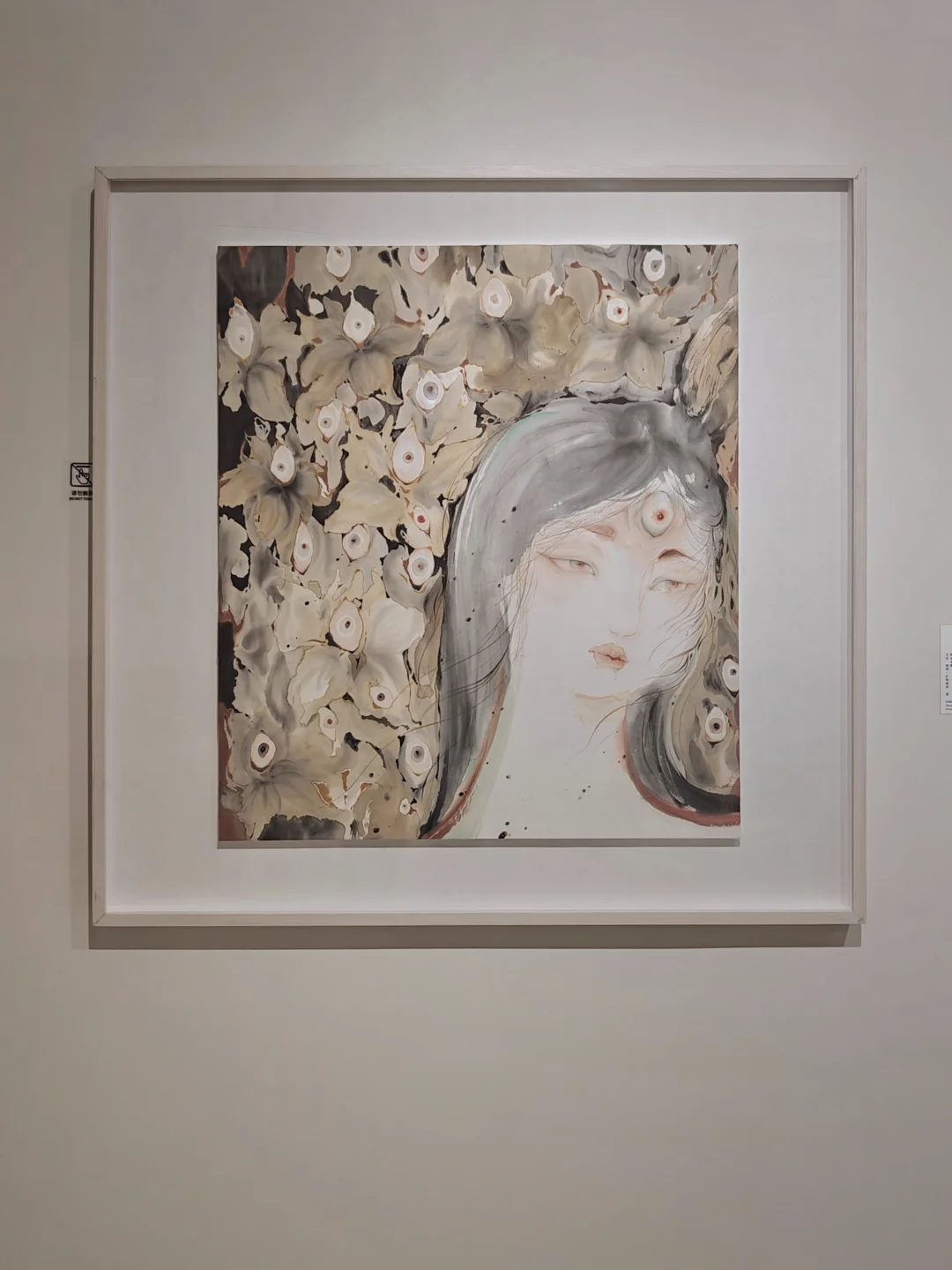 👁️作品中反复运用“眼睛”符号,既体现《大智度论》中的“五眼”,也构成海德格尔“此在”的视觉锚点,观者与画中眼眸对视时会坠入“能所双泯”的玄境。