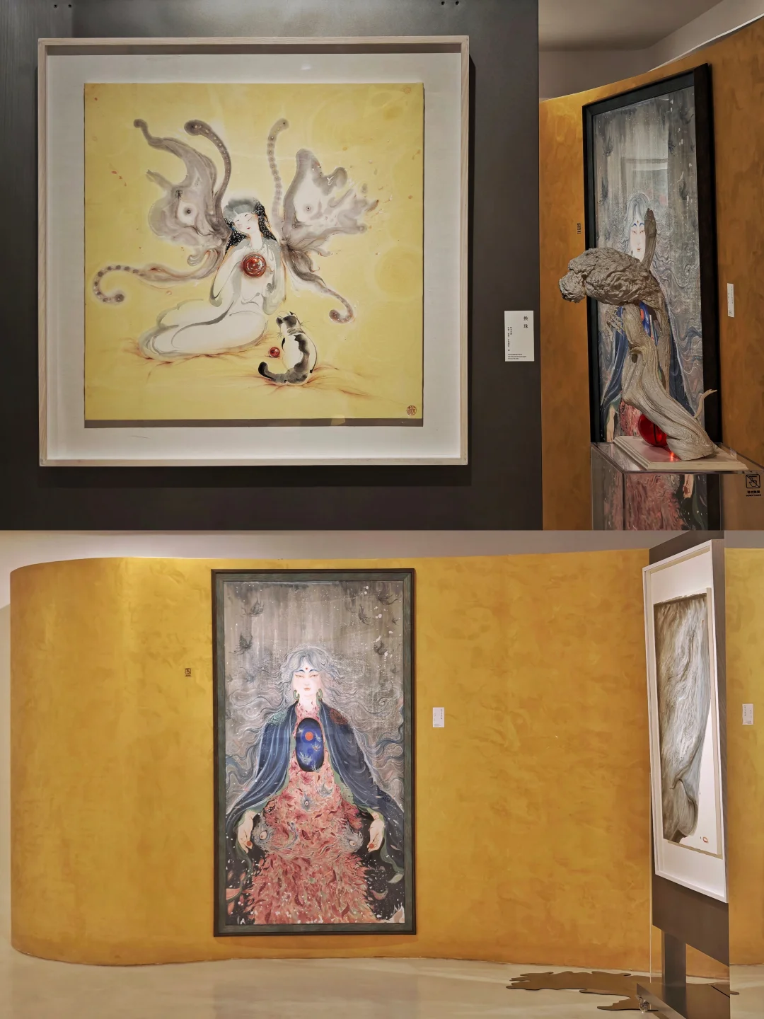 🖌️作品风格承袭传统写意的气韵生动和壁画的古朴雄浑,融入当代艺术的实验精神和观念性,形成独特视觉诗学。