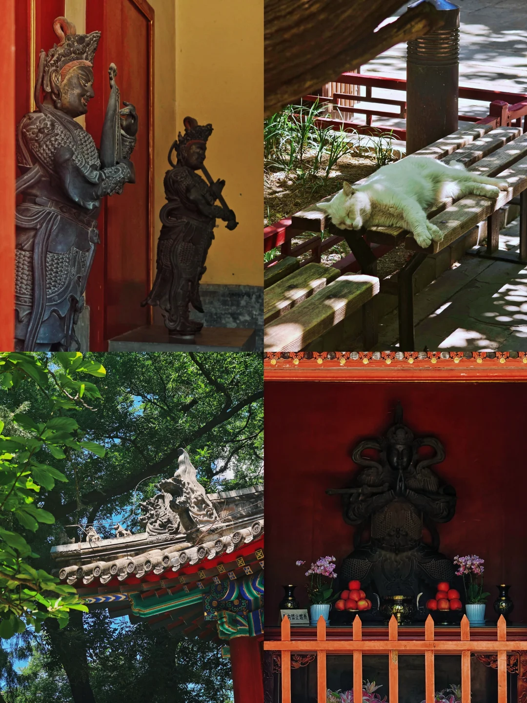 ·天王殿:清青铜狮子(或为咸宁宫移来),元“蛇儿年”白话碑,明弥勒、韦陀(大觉寺)及明四天王(拈花寺)