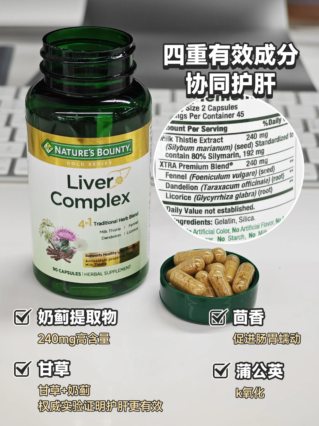 奶蓟提取物+甘草、蒲公英、茴香,都是对肝肝好的成分!