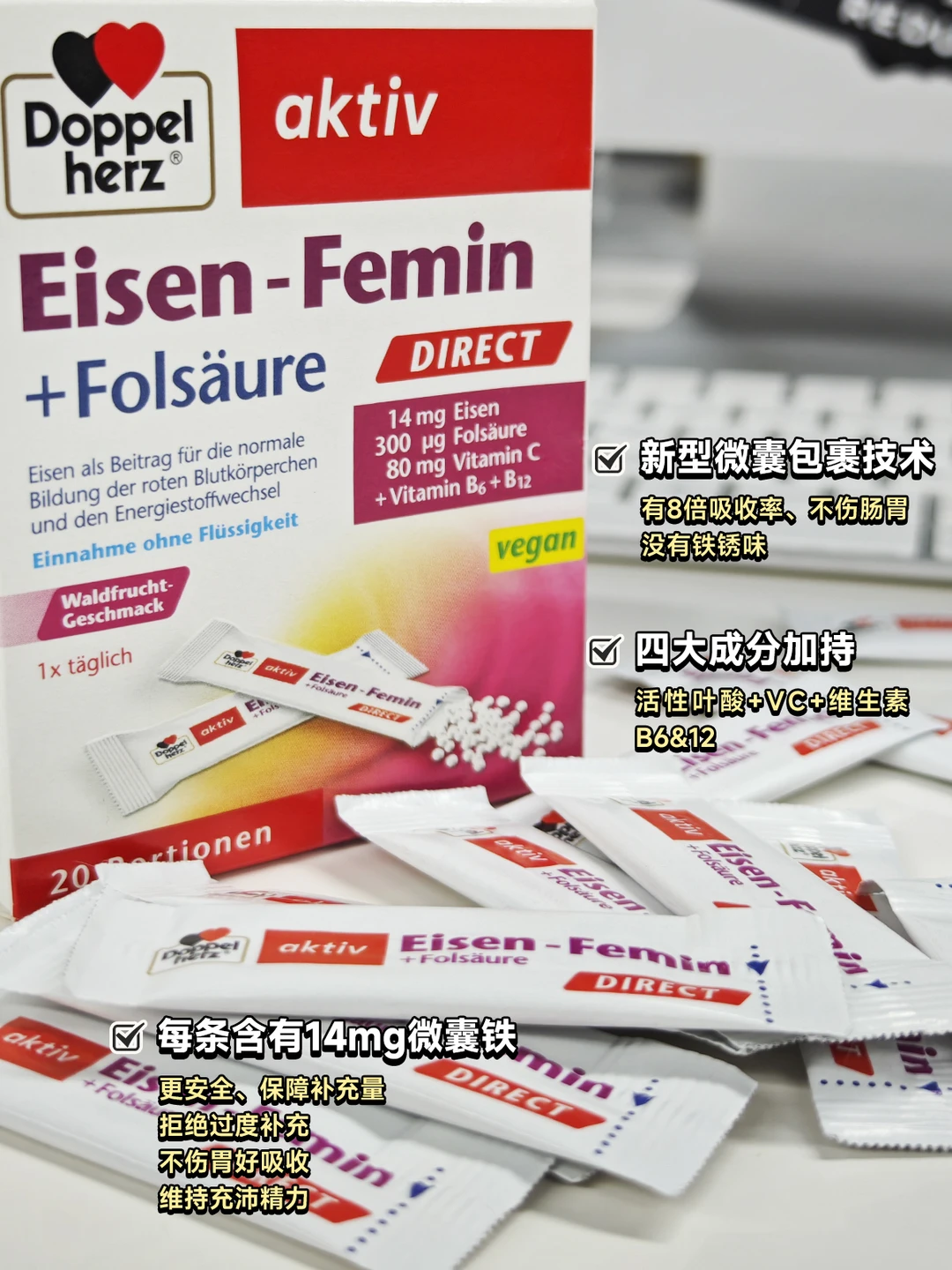 👍德国黑科技—微囊铁技术。不伤胃好吸收,味道酸酸甜甜,没有铁锈味。