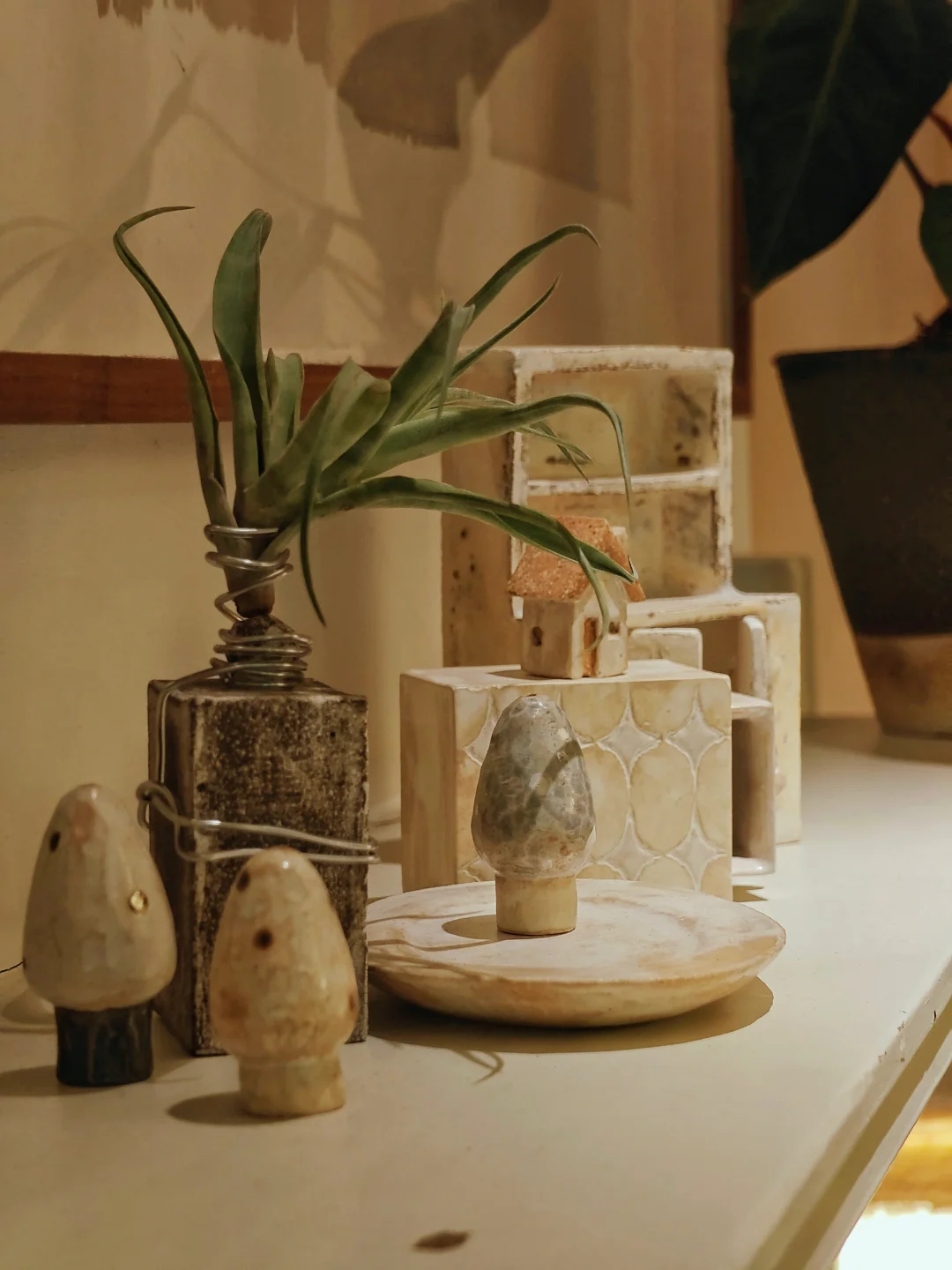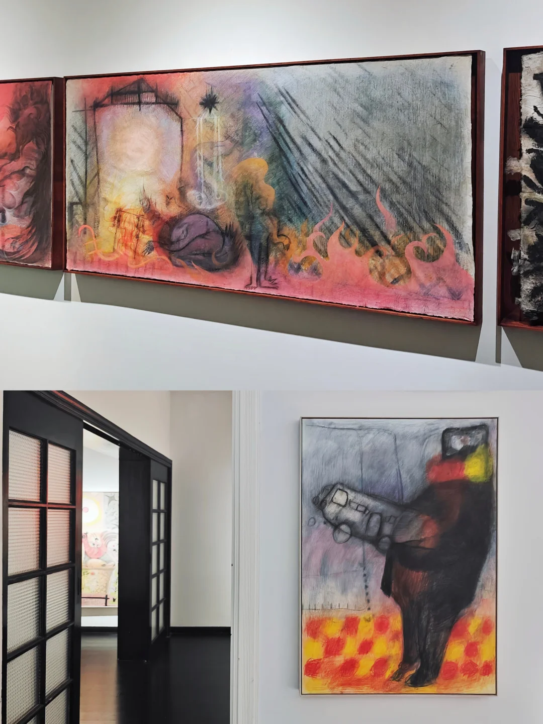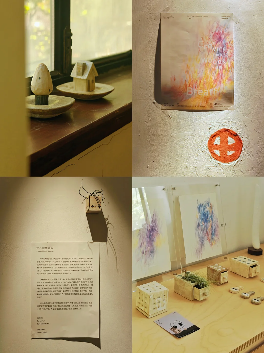 1⃣️寨心 📅10月23日🔚 -⏰14:00-18:00周一闭馆 📍CHAPTER 6画廊 安福路228弄6号 🖼展览名称取自艺术家同名作品,源自中国西南傣族、佤族等少数民族的古老文化——族群迁徙定居后,会先确立“寨心”(多以木桩或石头为象征),它既是物理空间中心,也是朝向祖先、祈福护家的精神锚点。 🖼艺术家围绕“万物的共通性”,探索自我、空间与万物间平等纯粹的灵性联结,展现人与自然依偎共生、万物有灵的理念。 🖼艺术家创作过程以“行走”为关键,本次展览作品均为她近两年深入西南少数民族地区旅居创作所得,她与当地住民共居、穿行热带雨林,汲取习俗、部落文化、迁移历史与信仰灵感。 🖼她的创作方式与材料凸显“自然与原生”,选用纳西族东巴纸、古老构树皮纸等“在地性”材料,常抛弃画笔,以手指直接在粗糙纸面上涂画,触摸材料的原始真实。 ———————————— 2⃣️於孔隙间呼吸 📅10月22日🔚 👨🎨Part-Time Studio | Fan Jiayun 陶瓷与多媒介绘画双人展,探讨物质、意识与存在的微妙关系,旨在通过作品与观者开展超越言语的对话。 作品都小小的,看起来“不起眼”,也并不是什么很成熟的作品,更像一些青涩的习作。它们散落在空间各处,布展看起来不怎么郑重其事,实际结合了空间的特性,颇有烟火气,与原空间的功能融合显得并不突兀。 📍田咖啡 新乐路70弄66号后门2楼201室 ———————————— 👉两个空间都藏在梧桐区老房子中,第一次去有些难找,CHAPTER 6已经去过很多次了,田咖啡是第一次去(这个更隐秘了,很像去人家家里做客),每次发掘这些犄角旮旯的艺术空间都充满乐趣。画廊主人也很会看人,像我这种喜欢自己默默看的i人,他们就不会主动过来介绍有的没的,说实话这种在小空间中保持社交距离的体验是我喜欢的,会很放松。 💗关注我,每天带你免费看展💗