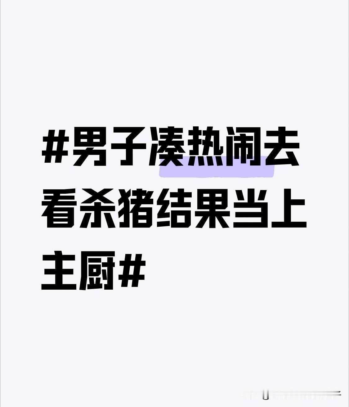 男子凑热闹去看杀猪结果当上主厨 1月11日重庆合川这事儿太逗了!女子“呆呆”在社交平台喊人帮忙按猪吃刨猪汤,还发了定位。结果好家伙,上千网友蜂拥而至,合川区云门街道庆福村热闹得不行。 来自重庆江北的赵先生最先赶到,他一开始还质疑消息真假,不过提前就做好了当厨子的准备。毕竟他学过厨师,到现场就当上了主厨。一早扎进厨房准备杀猪饭,帮忙的基本都是网友,呆呆妈妈负责烧火。原本准备15桌饭菜,中午超了两三桌。赵先生说本来是去玩,结果把自己玩大了,没网友帮忙差点下不来台,这压力可不小!