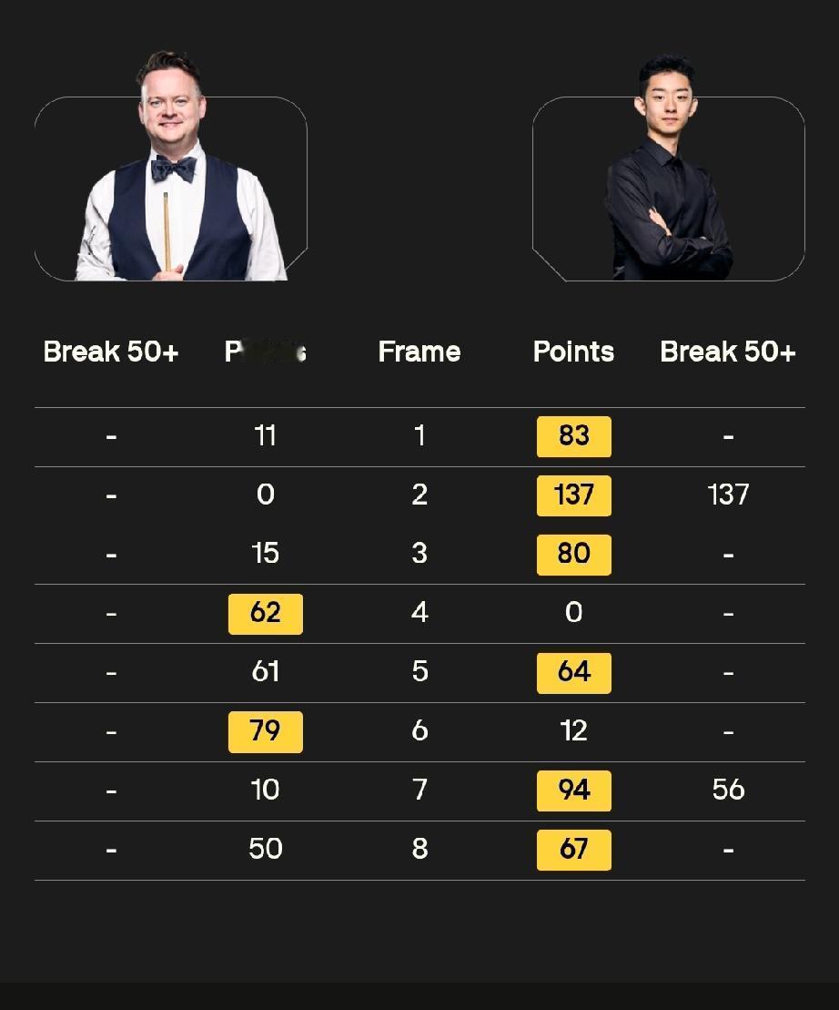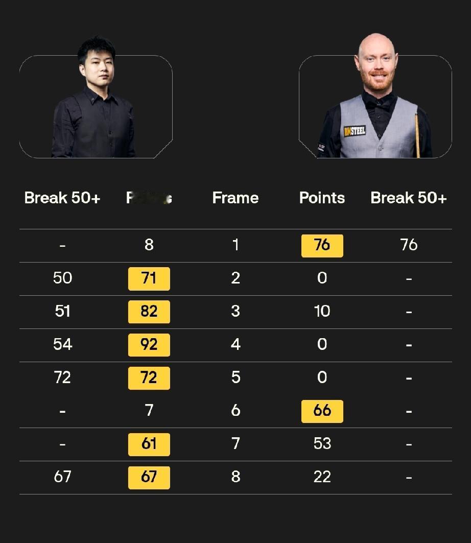 大师赛前四场,四个6-2! 1月13日清晨,斯诺克大师赛结束了四场16进8的比赛。 比分都是6-2! 吴宜泽6-2肖恩·墨菲,三连鞭; 肖国栋6-2马克·塞尔比,四连鞭! 马克·艾伦6-2马克·威廉姆斯,五连鞭; 赵心童6-2加里·威尔逊,四连鞭! 四人晋级,其中,三人是中国球员!加油!