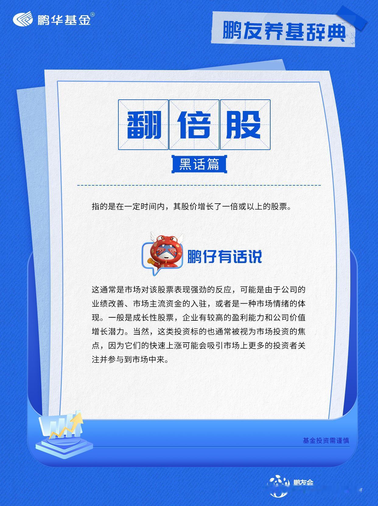 鹏华基金投资者教育基地“翻倍”简言之,就是基数乘倍数,那大家在金融投资领域中,是否听说过“翻倍股”呢?这又该如何理解呢?本期鹏友养基辞典带大家了解下~基金理财
