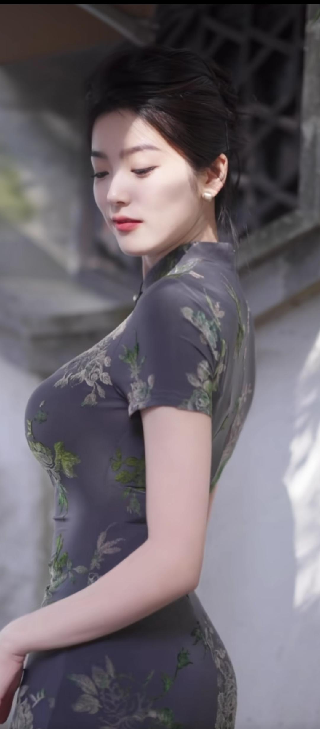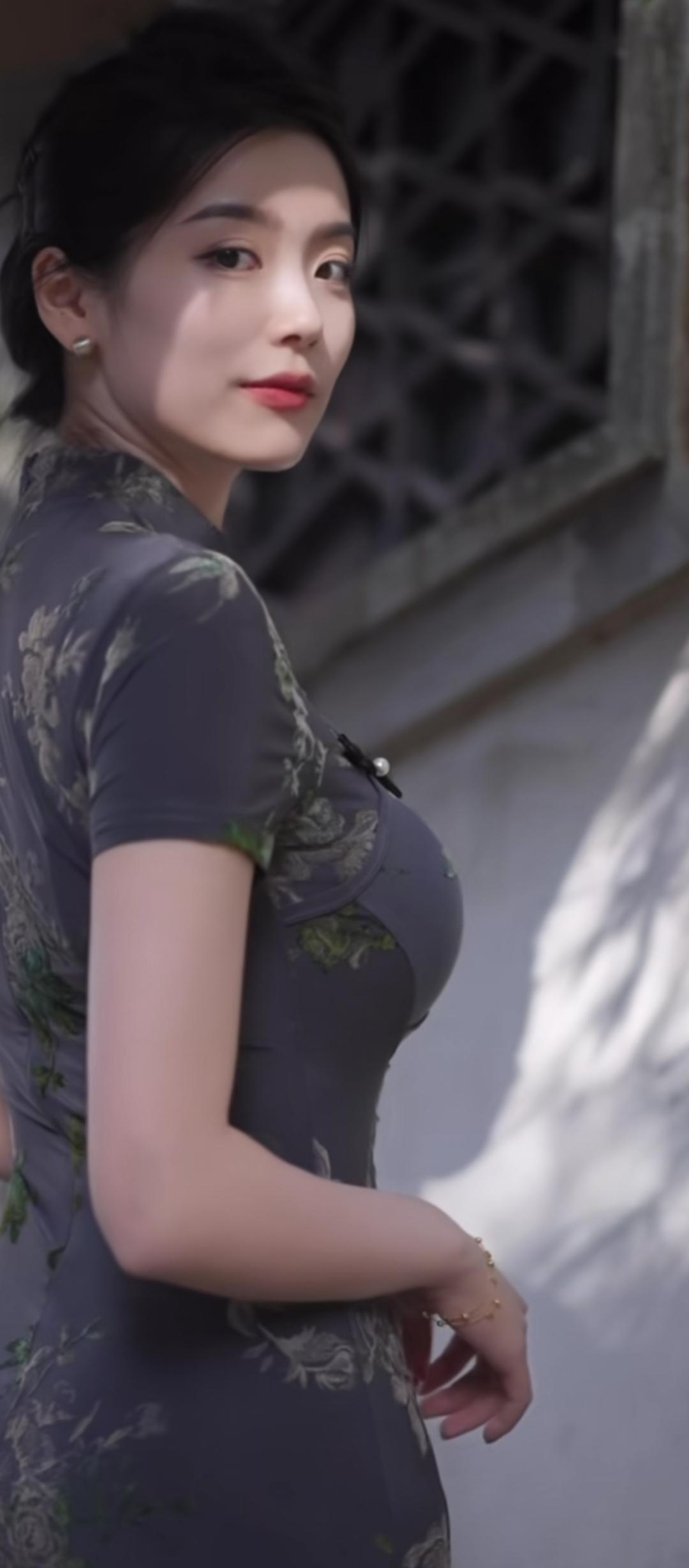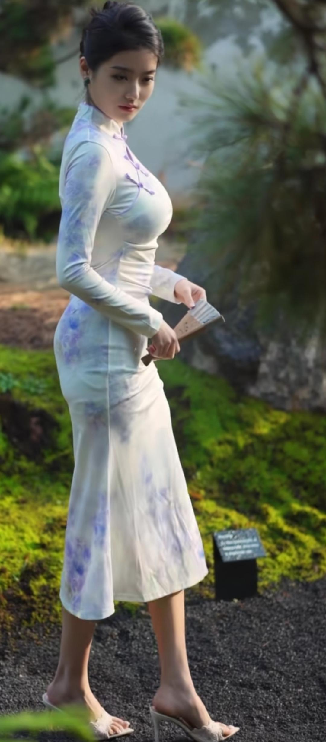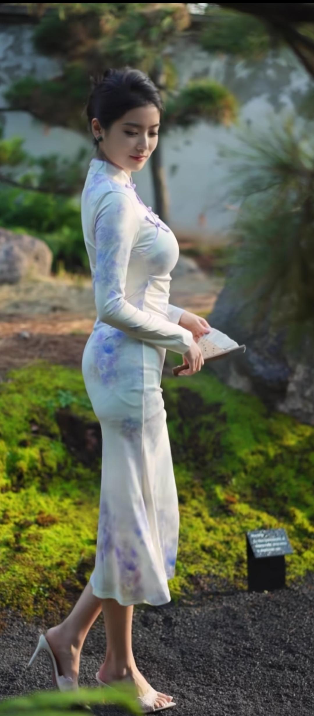 优雅漫步在花园中,古风长裙飘逸动人。