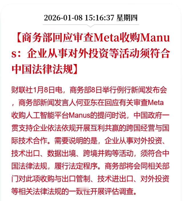 以为换个“马甲”跑到新加坡,就能把在中国养大的“金娃娃”卖给美国人? 这算盘打得响,结果直接被商务部按住了! 说的就是那个Manus! 大家还记得不,就在前阵子,这个Manus刚冒出来的时候多风光,号称是全球首款能自己干活的通用AI,能拆任务、能调用工具,当时可把大伙期待坏了,都觉得国产AI总算要支棱起来了。 那时候它搞邀请制内测,名额根本抢不到,二手平台上一个内测码直接炒到一万多块,多少人盯着它,盼着它能扛起国产AI的大旗,在国际上也能争口气。 可谁能想到,这份期待转眼就成了笑话,火了还没三个月,这公司就彻底露了真面目 国内的员工说裁就裁得精光,连句像样的交代都没有,服务器说拔就拔,用户账号说封就封,总部连夜就搬到新加坡去了,说白了压根没把国内的市场、国内的用户还有跟着它干的员工放在眼里。 明眼人一看就懂,这就是急着洗白身份!他们怕是清楚得很,带着中国企业的标签,想被美国的Meta收购,根本过不了监管这关,跑到新加坡换个注册地,改头换面成所谓的“纯外企”,就以为能金蝉脱壳 可他们忘了,Manus能有今天的底气,哪一样离得开中国的土壤? 它的核心团队全是咱中国的技术人才,那些熬夜写代码、打磨算法、攻克难题的,全是咱中国人; 它刚起步的时候,享着国内宽松的创新环境,没人给它设条条框框,才能顺顺利利把产品打磨出来; 它的第一批用户也是咱国内的科技爱好者,帮着找bug、提建议,才把一个雏形产品做成了人人抢的爆款。 说白了,它就是靠着咱国内的人才、国内的资源、国内的市场红利,才把这个AI金娃娃一点点养大,现在值钱了,能变现了,转头就把国内的支持抛到九霄云外,切断所有关联,还要把辛苦攒下的成果打包送给美国人,这不是典型的端起碗吃饭,放下碗就砸锅是什么? 眼里只有钱,没有半点儿底线,更没有半点儿对本土市场的敬畏心! 再看这个Manus,真以为去新加坡转一圈,就能洗掉骨子里的中国印记? 简直是太天真了! 它的核心算法、核心技术框架,全是在国内研发完成的,血脉里的中国基因根本洗不掉。 商务部这次出手审查,查的从来不是简单的商业交易,而是要刹住这种吃里扒外的坏风气,要给所有想投机取巧的企业敲警钟! 要是放任这种行为不管,以后谁还愿意踏实做国产科技? 大家都想着走捷径,靠着国内的资源和人才把项目做起来,一旦值钱就跑路卖外资,赚一笔快钱就走人,那咱国产AI、国产芯片这些卡脖子的领域,什么时候才能真正崛起? 国内千千万万踏实攻坚、熬夜苦干的科技工作者,心里能不寒吗? 更关键的是,把咱国内研发的AI技术打包卖给美国的Meta,背后还藏着不小的风险。 AI技术可不是普通的小商品,它关联着数据安全、技术安全,万一核心技术外流,被别有用心的势力拿去滥用,那后果可不堪设想。 这个Manus眼里只盯着变现的利益,把这些潜在的风险全抛到脑后,说到底就是不负责任,不仅对国内市场不负责任,对整个行业的发展也不负责任。 而且它裁光国内员工,把总部迁到新加坡,说白了就是把国内的就业机会、产业发展的机会都带走了,留给国内的就只有一堆烂摊子,这种既不仁又不义的做法,本来就不该被市场容忍! 可能还有人替它辩解,说企业要全球化发展,哪里有利就去哪里,无可厚非。 这话纯粹是歪理! 全球化从来不是忘本化,企业享受了一个国家的发展红利,就得承担相应的社会责任,不能只讲利益不讲担当。 中国国产科技的崛起,从来不是靠一两个投机取巧的企业,而是靠千千万万扎根本土、踏实攻坚的从业者,靠的是一步一个脚印的积累,靠的是不服输、敢突破的劲头,绝对不是靠这种钻空子、吃里扒外的投机行为。 Manus的算盘落了空,恰恰说明这种端起碗吃饭、放下碗砸锅的做法,既过不了监管这关,也过不了民心这关,早晚得栽跟头! 商务部这次及时出手,不光是给Manus敲响了警钟,更是给所有科技企业划定了红线:创新可以,赚钱可以,走全球化路线也可以,但绝对不能忘本,绝对不能损害国家的产业安全,绝对不能搞这种吃里扒外的勾当! Manus这事就是个深刻的警示,投机取巧终究难长久,忘本逐利早晚要吃亏。 希望所有科技企业都能引以为戒,守住初心,把心思放在技术攻坚上,放在回馈市场上,放在帮着咱国产科技崛起上,而不是总想着钻空子、走歪路。 毕竟靠歪门邪道赚来的钱,终究守不住,也不光彩!