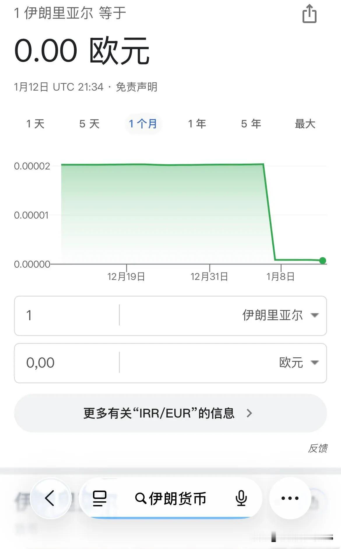 最新突发,伊朗的里亚尔对换欧元直接跌为0,与美元汇率也变成0