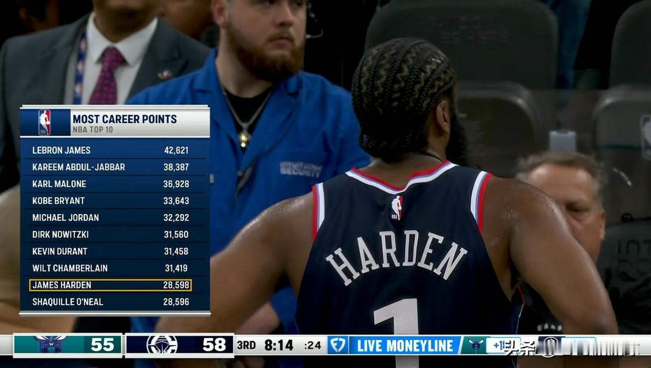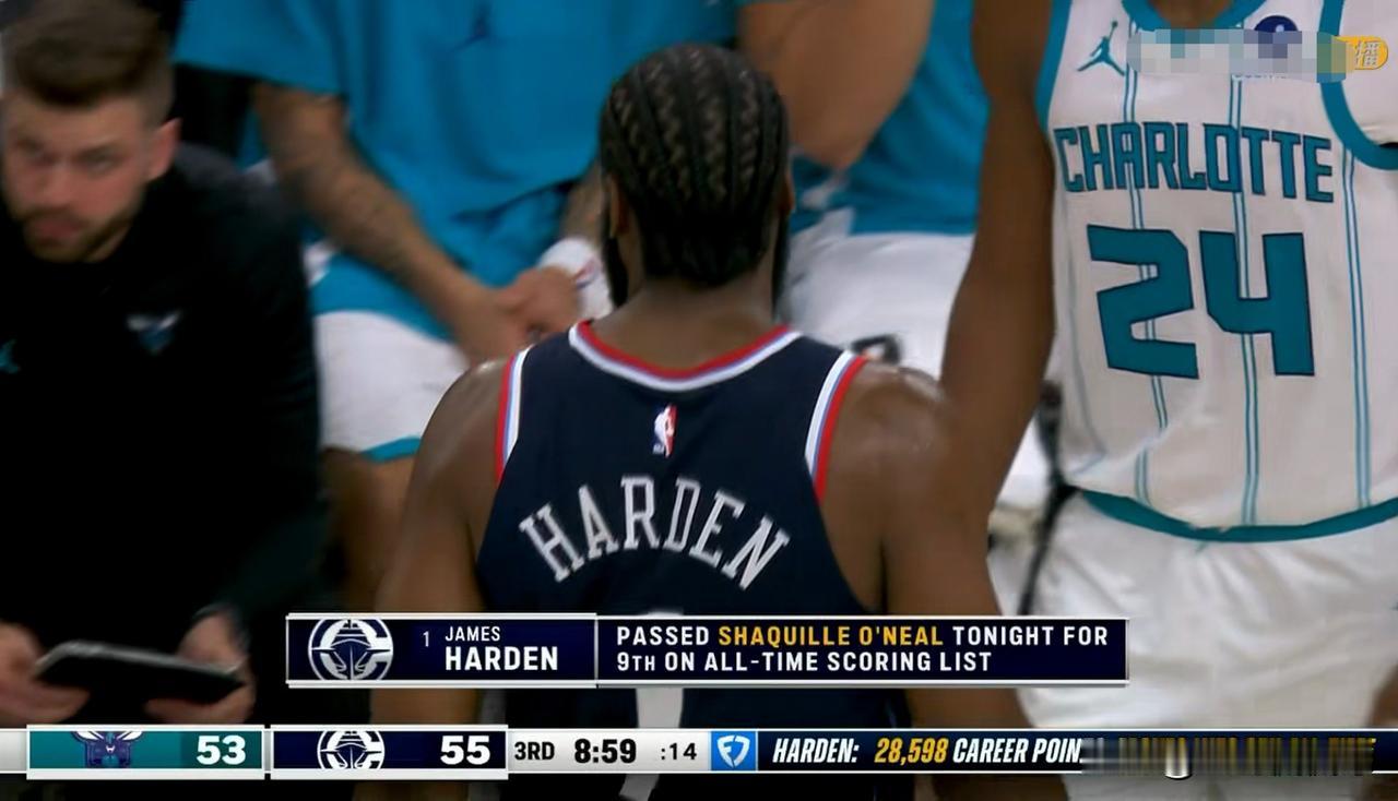 恭喜快船巨星哈登喜迎职业生涯里程碑时刻!在今天快船主场迎战黄蜂的比赛中,目前双方的第三节比赛正在激烈的进行中,值得一提的是,在第三节比赛的初段,哈登凭借着一记三分球让自己的职业生涯总得分来到了28958分,从而超越传奇名宿奥尼尔升至NBA历史得分榜第九位。 如果快船能够最终赢下本场比赛,那么今天对于哈登来说绝对是特别美好的一天。
