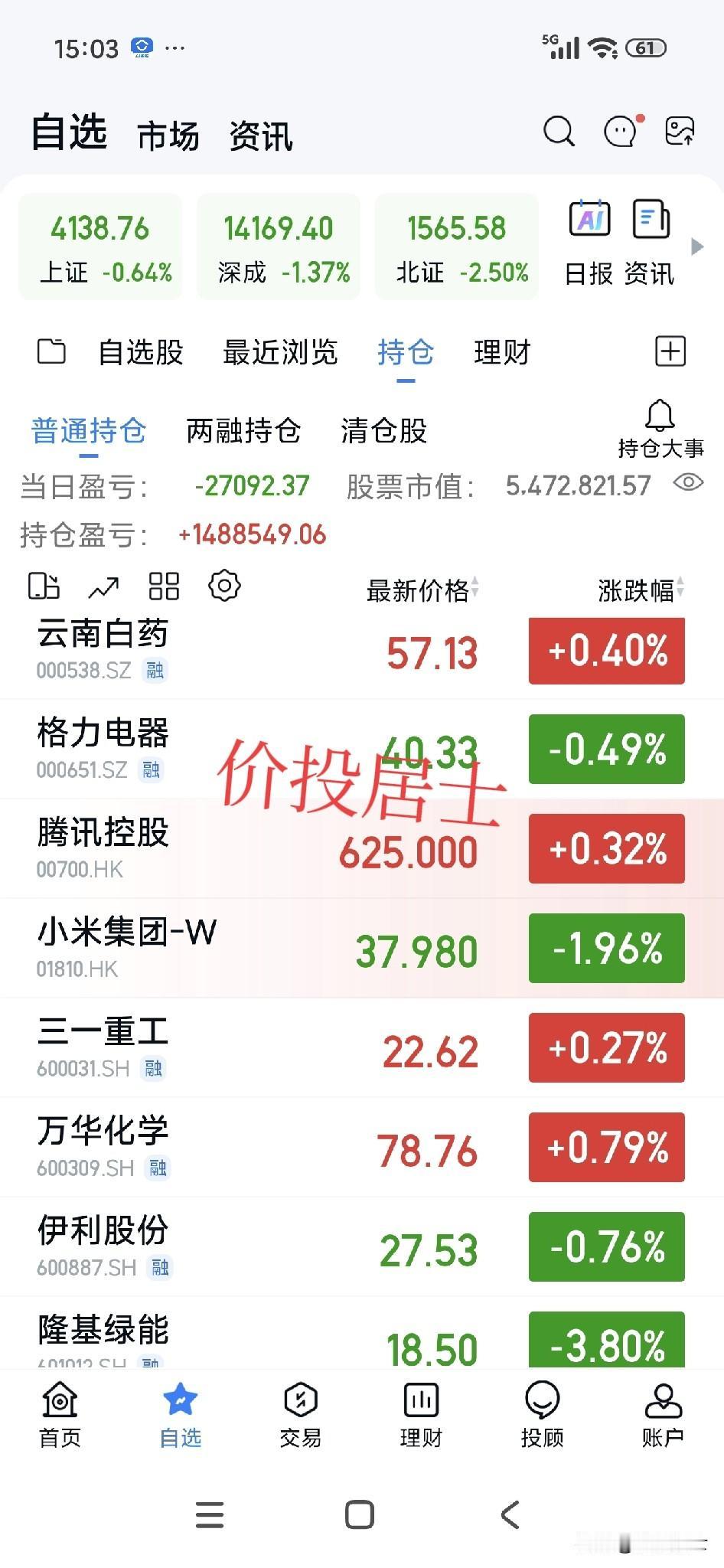 这会A股收盘了,正好这会我也刚睡醒[笑哭],今天大盘在17连阳之后,终于来了一个像样的调整,但是个人认为现在可以有调整,只是当前的位置绝对不是顶部区域!也不可能出现深调! 大家看看现在的经济与消费就知道了,当前太需要一轮慢牛和长牛来刺激经济与消费复苏了!总有一些人说我们的股市不好,我们的股市本来起步就晚,但这并不意味着我们的股市就不能越来越好! 反正个人是鉴定看好祖国越来越强大,看好我们在未来是可以成为一个金融强国的!更加看好未来我们的核心资产股票,可以承接下来原来房地产大部分发投资属性! 我相信中国力量!对此从未怀疑过!我不反对别人投资其它国家的股市,那是个人投资自由,但是请不要轻易诋毁自己的国家与股市[祈祷]