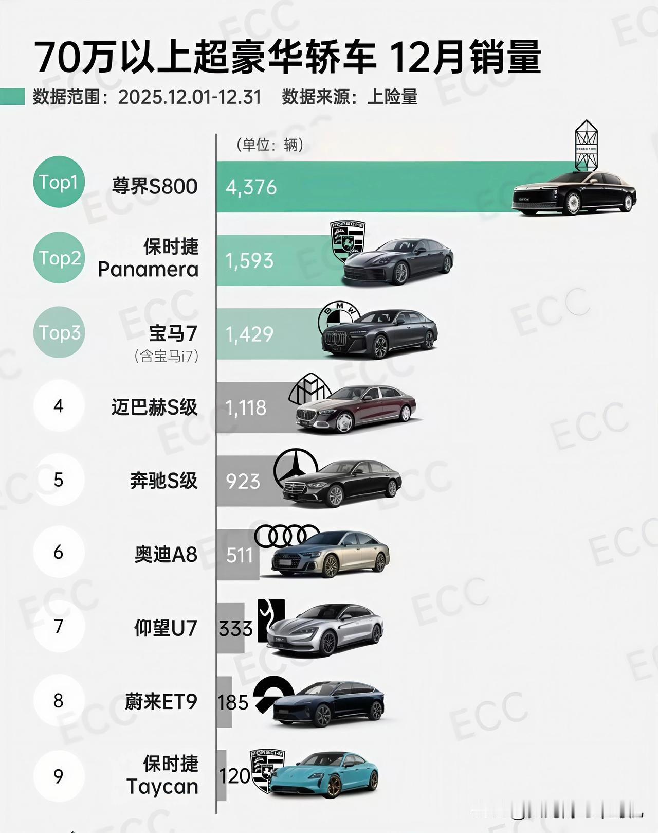 网络键盘侠又要难受了,看来能打败尊界的,只有尊界自己。 2025年12月,尊界S800交付量达4376台,超越奔驰S级、迈巴赫、宝马7系及奥迪A8四款车型当月销量总和(3981台)。 这已是该车连续第四个月稳居70万元以上豪华轿车销量榜首,创下中国品牌在超豪华市场的月度交付新纪录,标志着市场格局的显著变化。