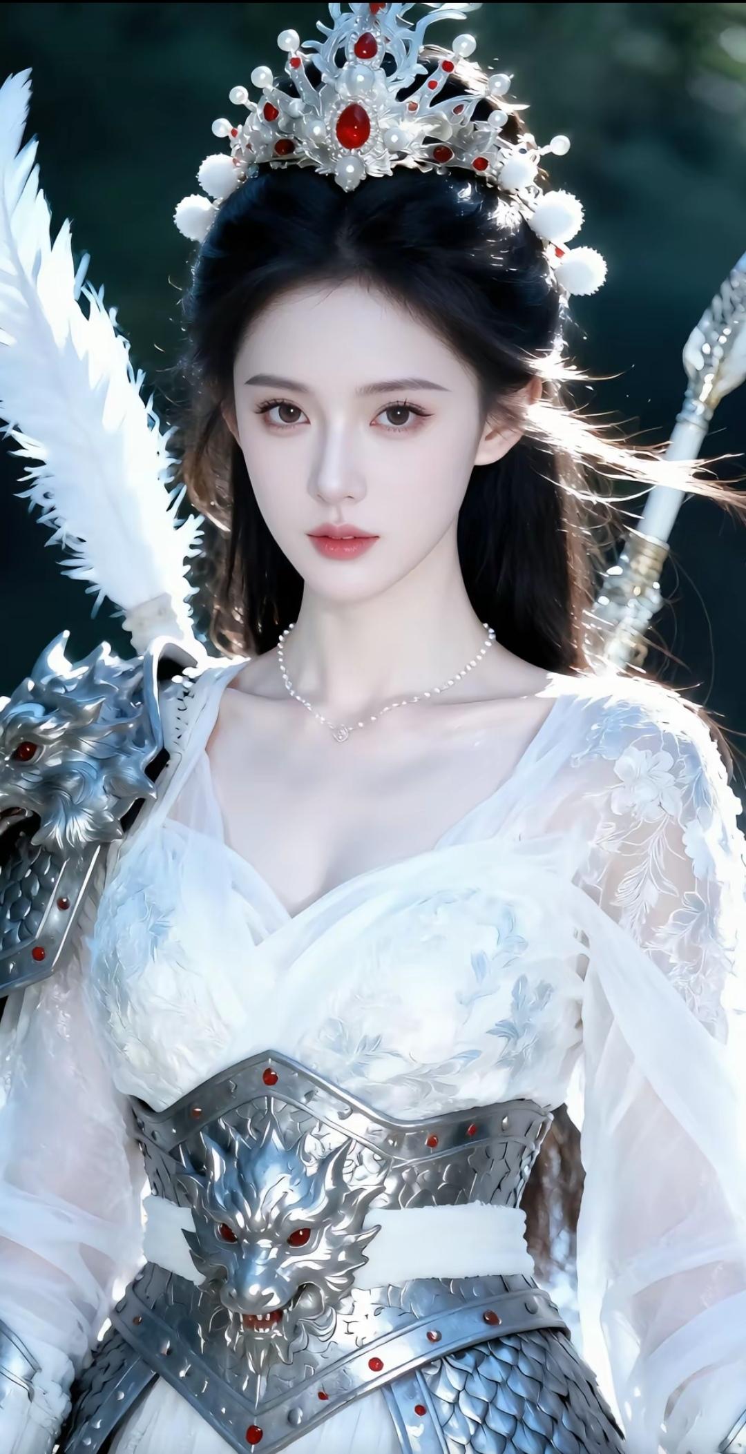 梦幻仙境中的白衣仙子,华丽头饰与银色盔甲相得益彰,宛如童话中的公主。