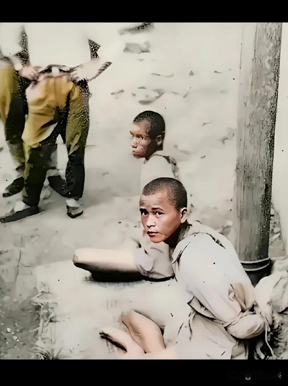 日本鬼子把这两个人五花大绑的绑在木杆子上,以日本鬼子的凶残狡诈,等待他们的结局是可想而知的。通过照片能够明显的感受到,这两人年纪不大,看样子都不一定到20岁,尤其是面对镜头的这个小伙,眉清目秀,长得非常的帅气,可惜他落入到日本鬼子的魔爪之中,凶多吉少,前途未卜!