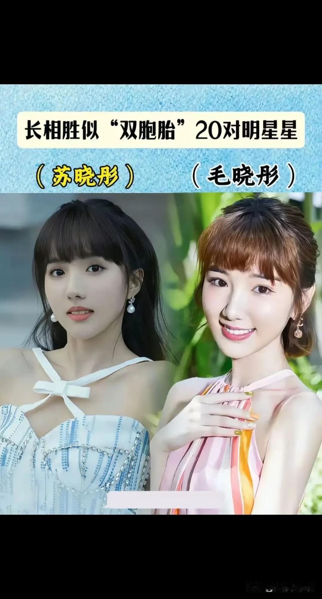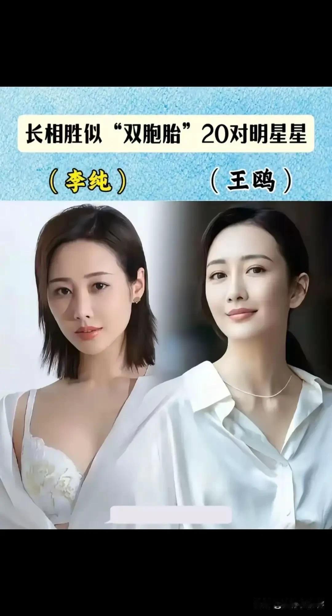 娱乐圈“撞脸”明星大盘点,看看谁和谁让人“傻傻分不清楚” 明道 和 阮经天。这俩可都是台湾偶像剧的“霸道总裁”专业户出身。明道靠《王子变青蛙》单均昊封神,阮经天凭《命中注定我爱你》纪存希大红。他们脸型、眉眼、特别是笑起来那股子邪魅(或者说自信)的劲儿,确实有几分神似,都属于浓眉大眼、轮廓分明的帅哥。 张一山 和 夏雨。这一对是从小像到大!张一山小时候演《家有儿女》的刘星,就被说像年轻时的夏雨。他俩都属于“猴系”长相,脸型瘦长,眼睛不大但特别有神,透着股机灵劲儿,笑起来都有点“坏坏”的感觉。夏雨是年少成名的影帝,气质更慵懒、文艺一些;张一山则是童星转型成功的代表,气质更“痞”更“贫”,北京小爷的范儿十足。 李纯 和 王鸥。这两位都是演技派,且常演美艳反派或心机角色而闻名。李纯的《花千骨》霓漫天,《如懿传》卫嬿婉;王鸥的《琅琊榜》秦般弱,《伪装者》汪曼春。她们的脸型、眉眼妆容(尤其适合红唇浓妆)以及那种冷艳、略带攻击性的美人气质,确实容易让人混淆。