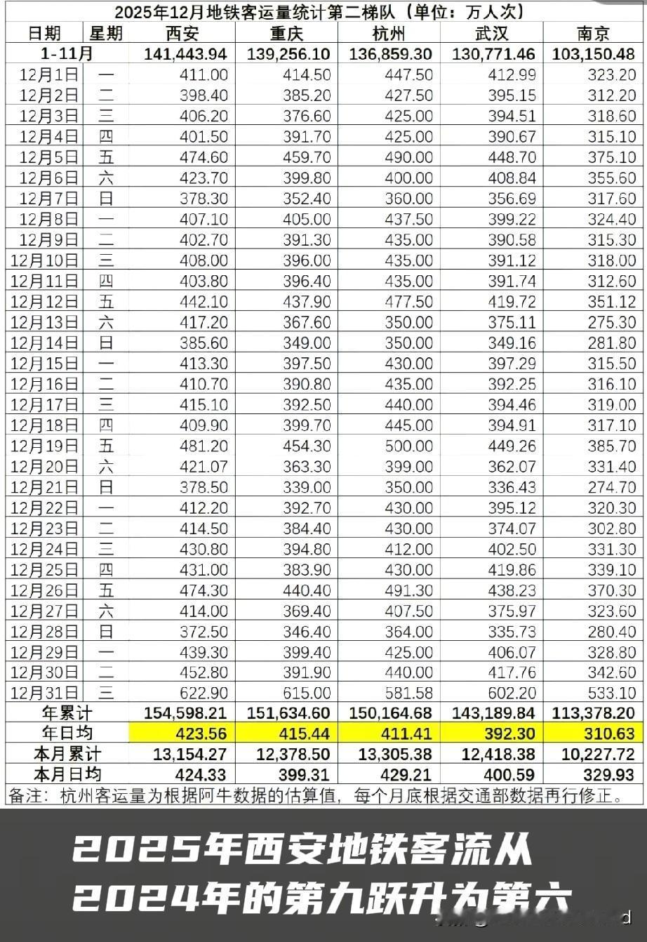 西安地铁客流, 自从15号线开通, 稳居全国第六。 期待西安东站的开通, 虽然5号线只有1.8公里. 但客流也会增加5万以上, 继续巩固第六的位置。