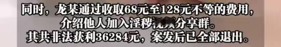 女子加入多个淫秽视频分享群,贩卖牟利3.6万余元,并收费介绍他人入群,被判刑一年 2025年12月,浙江省浦江县人民法院依法对一名“90后”女子龙某涉嫌贩卖淫秽物品牟利罪一案作出判决。龙某被判处有期徒刑一年九个月,缓刑二年,并处罚金人民币4万元。 在这个信息爆炸、诱惑无处不在的时代,网络已经成为我们生活的重要组成部分。然而,网络的双刃剑也在悄然伤害着社会的底线。近日,一则关于“90后”女子龙某的判决新闻再次引发了公众的热议,也让我们不得不正视一个令人痛心的现实——网络空间的道德底线正被逐渐侵蚀。 据报道,龙某加入多个淫秽视频分享群,竟然靠贩卖这些非法内容牟取了3.6万余元的非法收入,更令人震惊的是,她还收费介绍他人入群,似乎已经将这条灰色产业链视为一份“事业”。这样的行为,令人愤怒,也令人深思:在追求利益的过程中,个体的良知和责任何去何从?网络空间的“灰色地带”到底该由谁来守护? 这起案件的背后,折射出一个更深层次的问题——青少年的价值观引导和网络监管的缺失。我们常常在新闻中看到类似的事件,年轻人被利益驱使,迷失在虚拟的“金钱迷宫”中,逐渐远离了最初的善良和正义。而社会、家庭、学校的责任又在哪里?我们是否在不经意间,为了追求短暂的娱乐和利益,放松了对青少年的引导? 值得一提的是,法院对龙某的判决——一年九个月的有期徒刑,缓刑两年,并处罚金4万元。这不仅是对个人的惩戒,更是一种警示。法律的威严在于惩戒那些试图以非法手段谋取私利的行为,同时也提醒我们:任何试图通过不正当手段获取利益的人,终究难逃法律的制裁。 这起案件,也让我们反思:在数字时代,正能量的传播比以往任何时候都更为重要。我们需要用更多的善意和责任感,去抵御网络中的“暗流”。家庭、学校、社会都应成为青少年的坚强后盾,帮助他们树立正确的价值观,懂得何为底线,何为责任。 或许有人会说:“这只是个别现象”,但正是这些“个别”,在积累中形成了社会的风向标。我们每个人都应成为守护网络清朗空间的守望者。不要让“灰色产业”成为青少年的梦想,也不要让法律的惩戒成为最后的底线。 在这个充满变数的时代,正能量才是我们最坚实的力量。让我们共同努力,守护网络的纯净与善良,让未来的每一个孩子都能在阳光下健康成长。这不仅仅是法律的责任,更是我们每个人应尽的义务。因为,只有守住了底线,社会才能真正走向光明。淫秽犯罪 低俗色情群聊 淫秽物品牟利