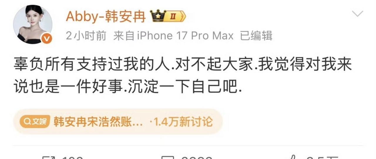 韩安冉的微博也被禁言了。 这对靠炒作婚姻起家的网红夫妇,终于被流量反噬。 看着他们反复结婚离婚,把私生活当连续剧演,我只想问一句:这到底是真人还是演员? 平台早干嘛去了? 非要等骂声盖不住了才动手? 他们就像在流量赌场里杀红眼的赌徒,把家庭矛盾当成筹码,把网友的同情和愤怒当提款机。 为了博眼球,甚至说出“辜负所有人是好事”这种话,简直是在挑战大众的底线。 当流量成为唯一的信仰,底线就成了最先被抛弃的东西。 难道在这些网红眼里,除了数据,就再也没有值得珍惜的东西了吗?