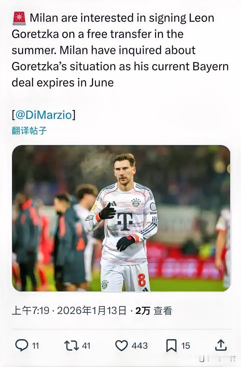 戈雷茨卡!德甲拜仁慕尼黑中场球员莱昂·戈雷茨卡的合同即将到期,球员决定七月份离开拜仁慕尼黑,米兰是对莱昂·戈雷茨卡有意的俱乐部之一。据说米兰与莱昂·戈雷茨卡接触并不是从冬季窗口开始的,米兰一直都在关注莱昂·戈雷茨卡的情况,在前年冬季窗口米兰曾经对拜仁慕尼黑俱乐部送出过尝试报价。 这个尝试报价不知道各位老哥是否记得,那时候传拜仁慕尼黑对咱们莱奥感兴趣,米兰当时提出过德国中场莱昂·戈雷茨卡,据说米兰俱乐部一直都对莱昂·戈雷茨卡感兴趣。 AC米兰有意在今夏免签莱昂·戈雷茨卡。戈雷茨卡与拜仁的合同将于六月到期,米兰已就其情况进行了沟通,米兰俱乐部愿意拿出最大诚意打动莱昂·戈雷茨卡。 莱昂·戈雷茨卡目前1300万税前年薪,来了估计要降薪到1000万以内,利好消息是因为政治言论问题沙特那边不可能要莱昂·戈雷茨卡,个人觉得莱昂·戈雷茨卡与维拉蒂可能会来一个。
