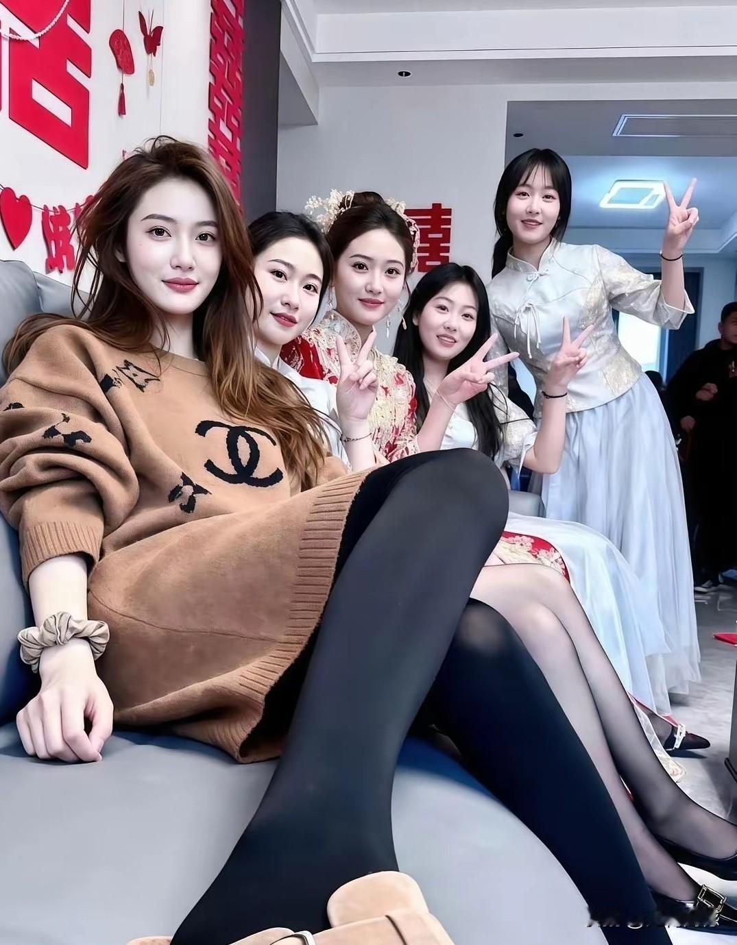 在这张照片中,有人说新娘子比较漂亮,这些伴娘也比较漂亮,但是用我的眼光来看的话,这些人看不出真实的颜值,因为基本上都是化妆化成了这个样子,再加上有美颜的加持,真实的她们未必如此,实实在在说,现在想判断一个人是不是美女,也是非常困难的!
