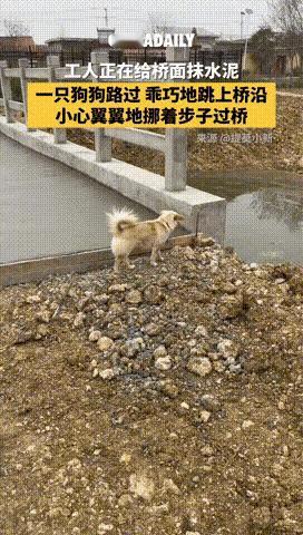 “好有灵性!” 工人铺桥面水泥时,狗狗的操作直接看呆众人——它没乱踩未干的水泥,反而默默跳上狭窄桥沿,小心翼翼挪着步子通行。 这哪是普通小狗,分明是懂分寸的“小绅士”啊! 科学都证实狗狗有超强共情力,能读懂人类的行为意图,它大概是看出工人干活不易,才主动选择不添乱。 很多人纠结“文明养犬”,其实狗狗的“素质”,本质是对他人的体谅。 比起那些被主人放任随地大小便、随意冲撞行人的宠物,这只小狗用行动告诉我们:尊重从来都是相互的,哪怕是小动物,也能成为公共秩序的守护者。 文明养犬从来不是单向要求,你家毛孩子有没有过让你惊喜的“懂事瞬间”?