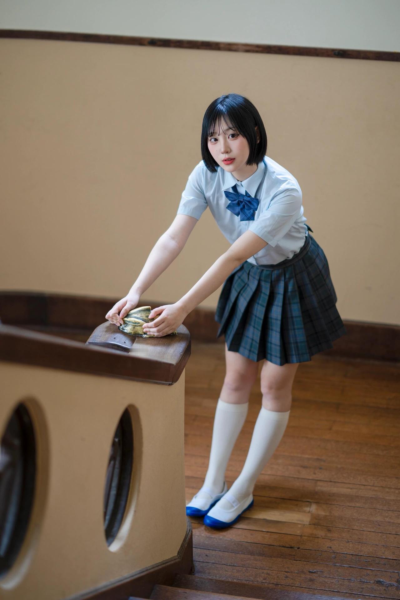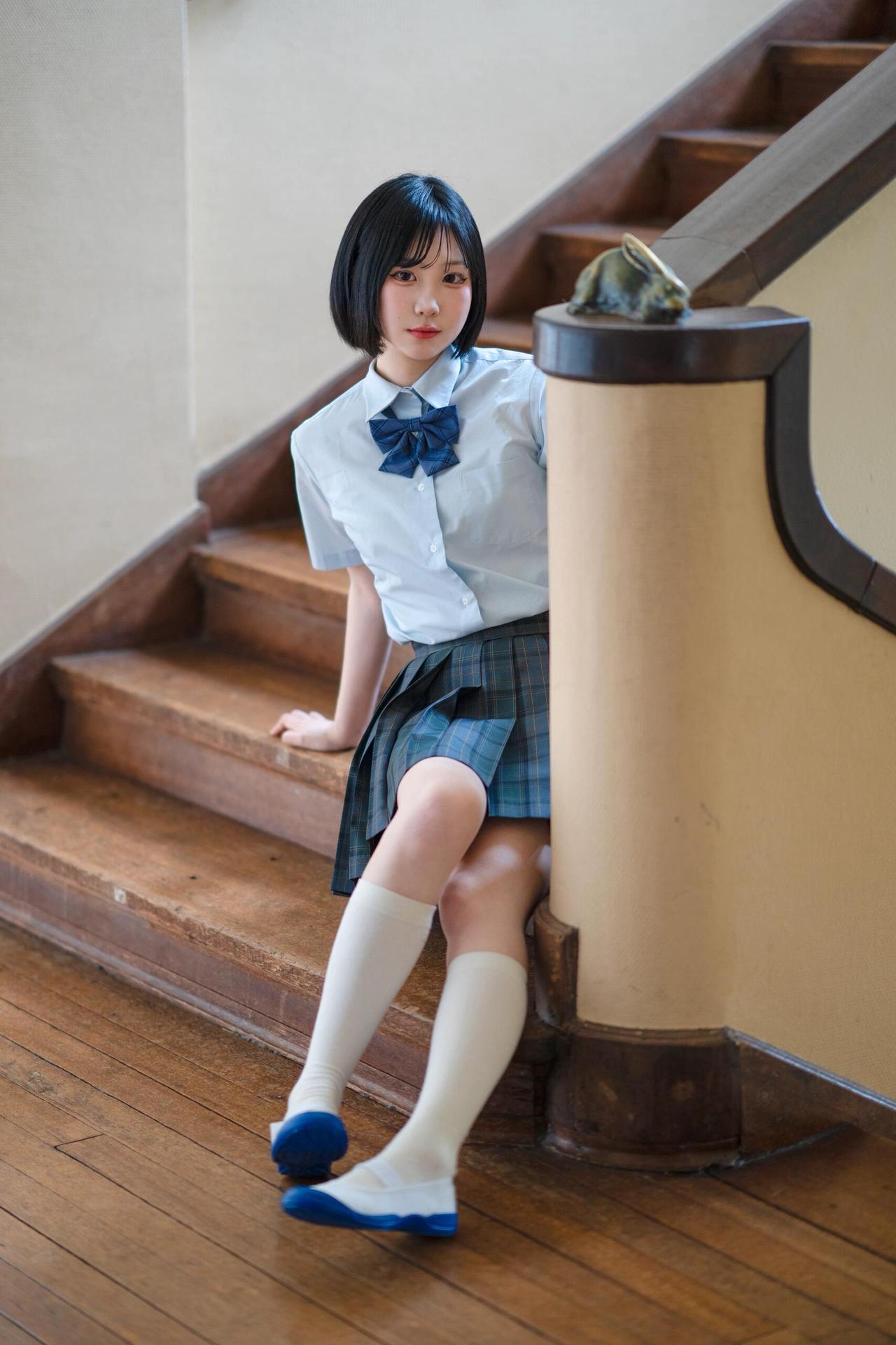 可爱少女,楼梯旁摆拍,青春气息满满!
