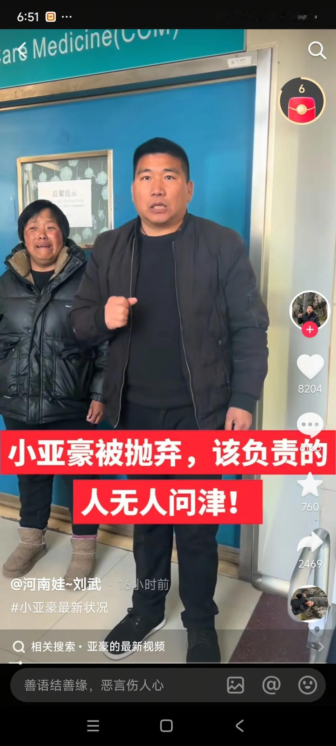 唉,这才是真的悲哀。 亚豪的事情也是众所周知,但是如今呢,躺在病床上受罪的还是他本人,门口的母亲更是哭天抹泪。 早知道如今何必当初呢? 自己的孩子不管教好,只是想着拿孩子去赚钱,想没想过今天的状况。 这事情发生了,妈妈着急了,而对于带亚豪拍视频方却是受到来自各方的压力和指责。 但是看的出来了,人家也是表示会跟到最后,至于亚豪的身体健康,拿出了一份体检报告。 或许那个时候的亚豪就应该开始减肥,而不是在继续胡吃海喝。很多人认为,生在这种家庭是他的命运,父母的无知再加上自己的不争气,导致这一切的后果。 其实有时候看,只有大环境才能够影响到一个人吧。不知道你们如何看待此事?